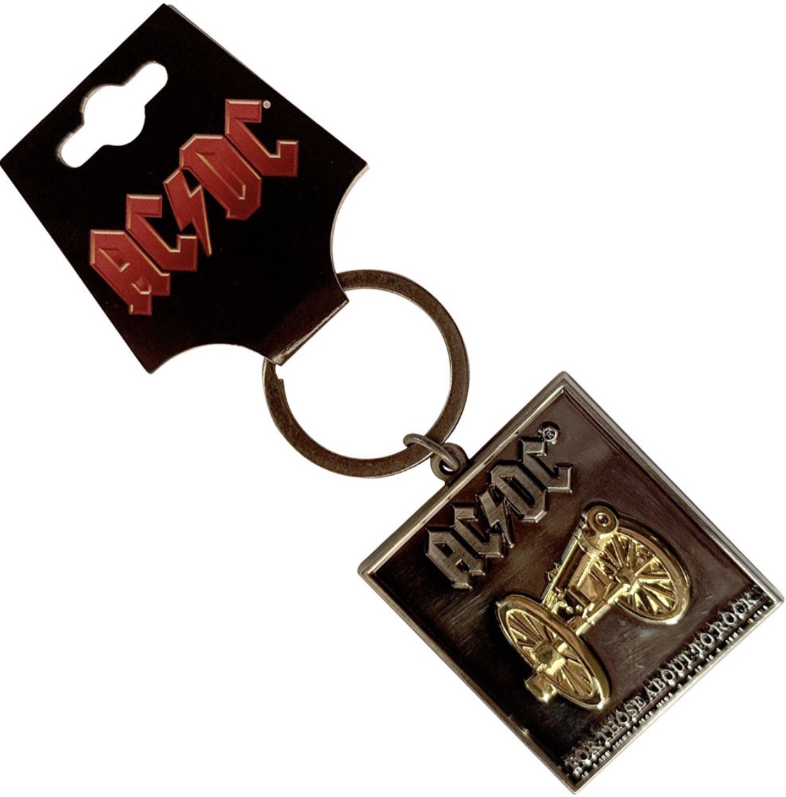 An official licensed AC/DC Keychain featuring the For Those About To Rock 3D design motif.