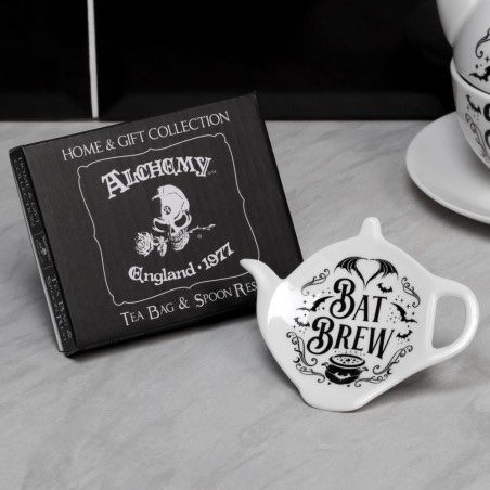 A unique addition to any Bat cave! Give your spoon a rest or dispose of your teabag on this teapot shaped rest! It would also make the sweetest gift for your alt loving tea drinking friend! This extraordinary piece forms part of the exciting Home & Gift Collection by Alchemy.