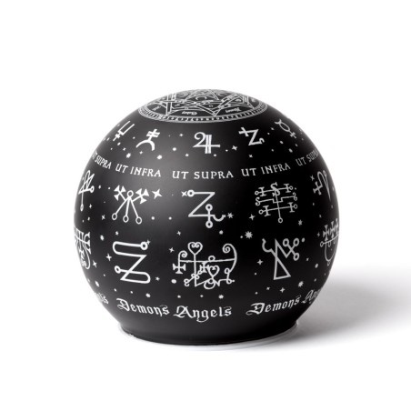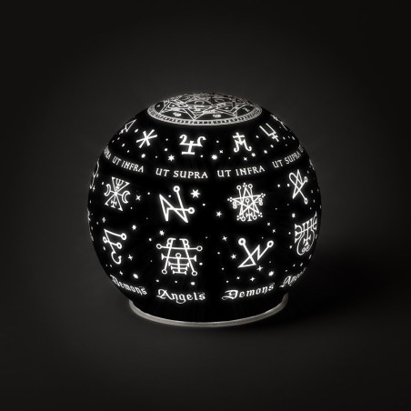 As we meditate on the Illuminated sigils of divine and demonic beings in the macrocosm of heaven and hell and all that lies between, the quintessence of enlightenment shall come only to the truly adept. Battery powered LED light. To operate: Simply slide the switch on the underside of the light.