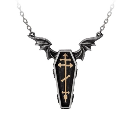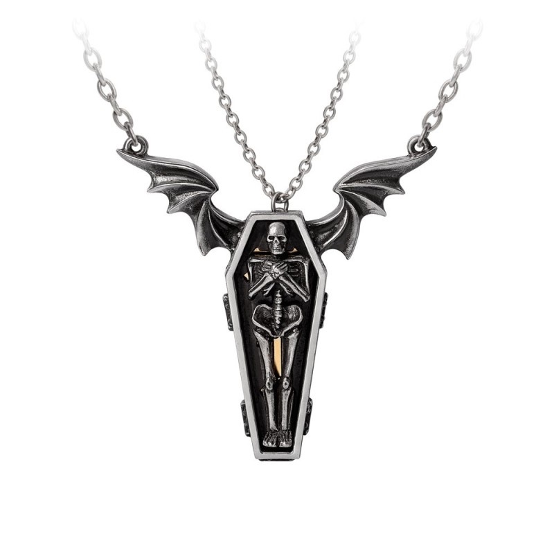 Communal acknowledgement of allegiance to the lord of Carpathia, and forever bound, body and soul, to his service. Embrace the profound connection you share with your partner through the exquisite ‘Undying Homage’ two-piece coffin and Skeleton couples necklace. This isn’t just jewellry; it’s a celebration of your love that intertwines life, death and intimacy in […]