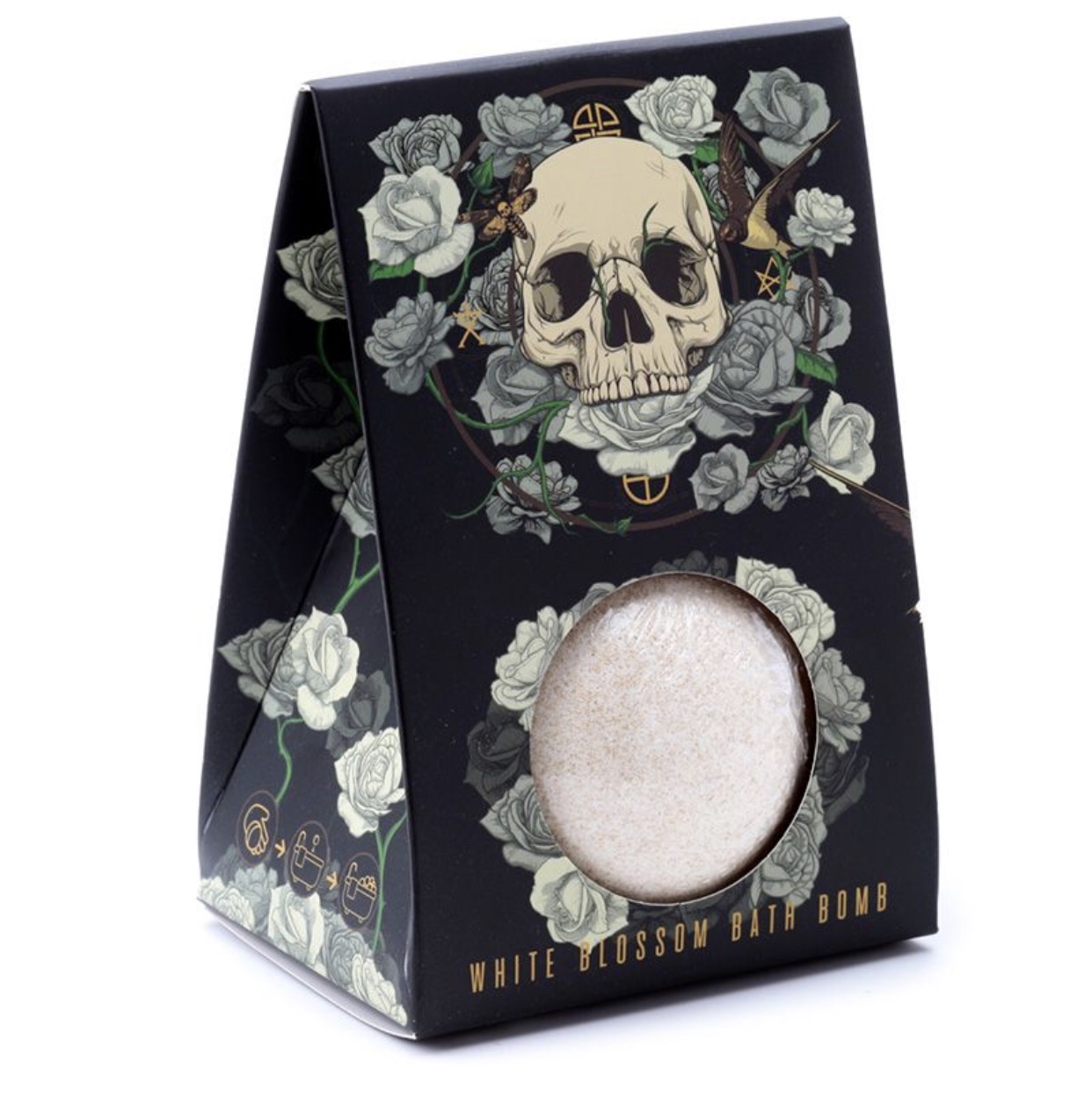 BATH73 Skulls and Roses Bath Bomb in Gift Box (White Blossom)