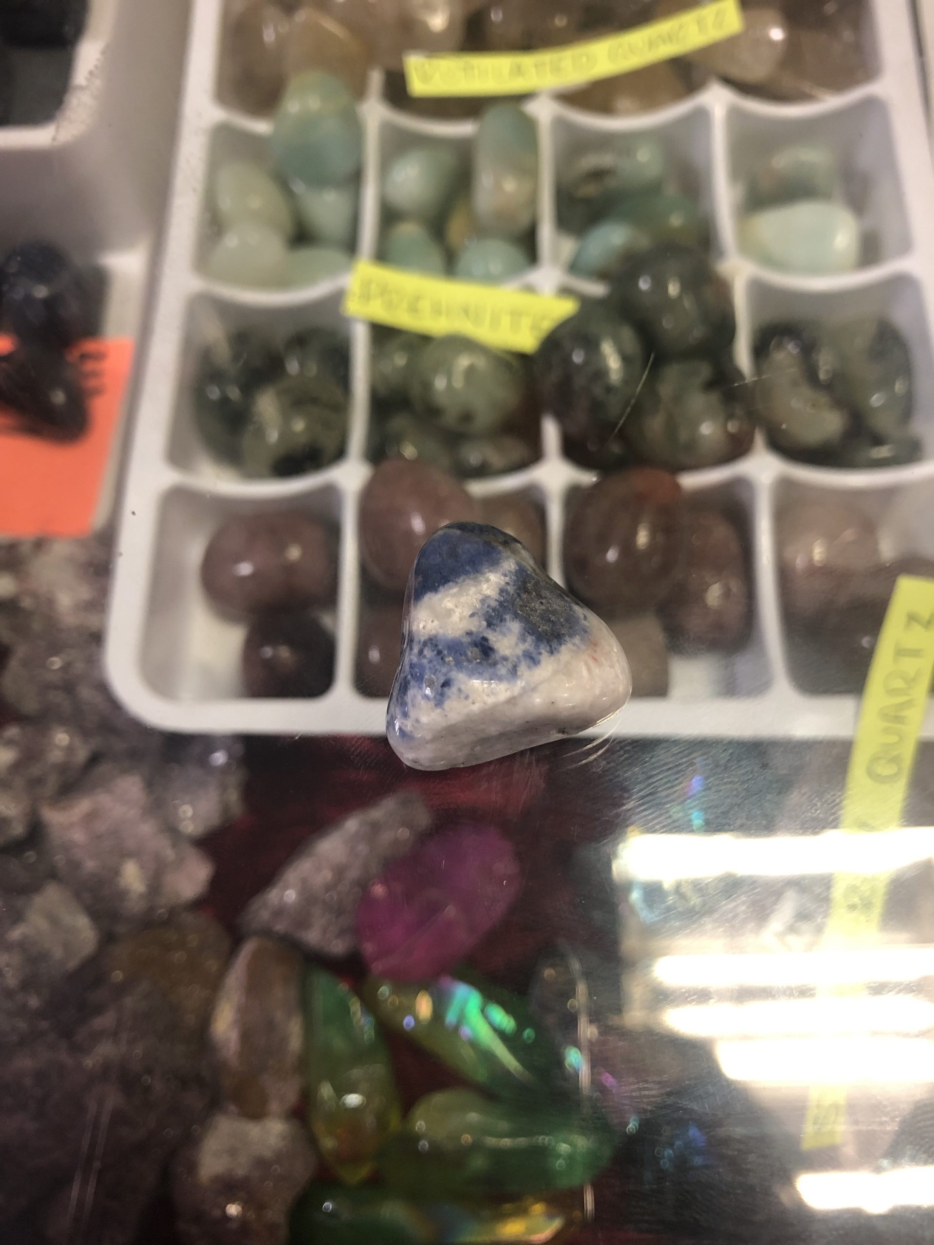 Blue sodalite crystal has a soothing and calming energy, ideal for anyone who wants to tap into their spiritual side or develop intuition. Sodalite aids communication, self expression & calms stresses and panic attacks. Useful meditation stone.
