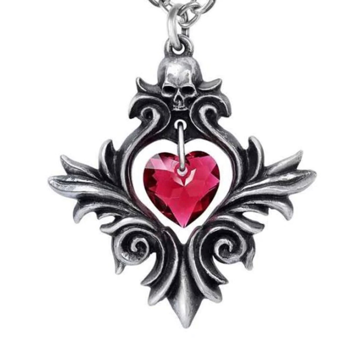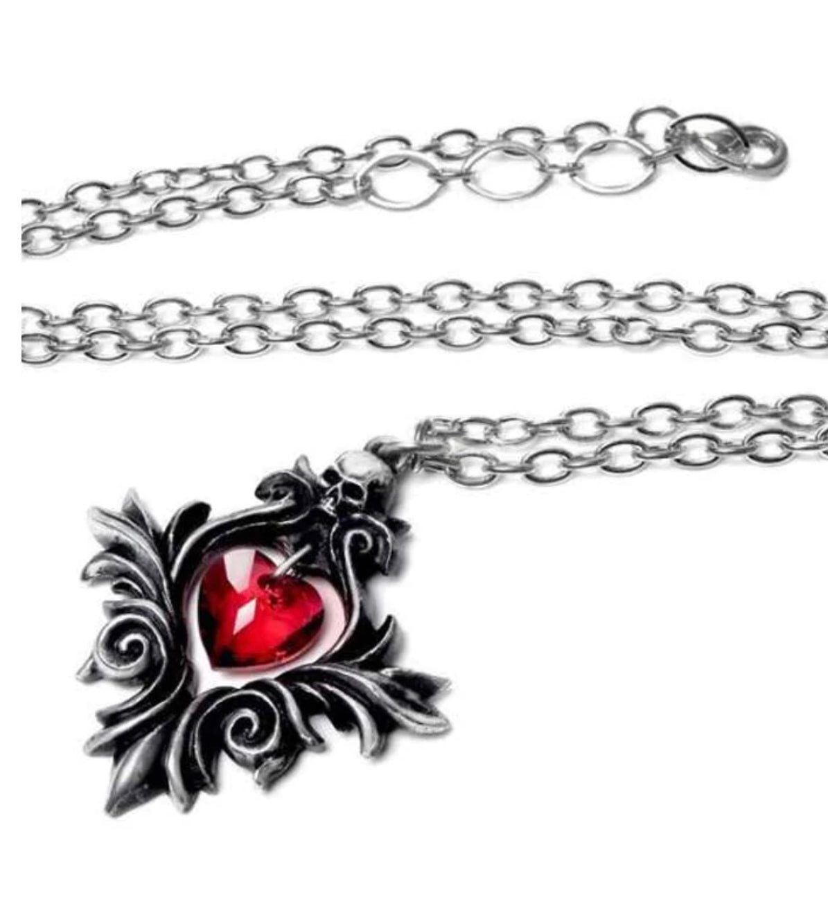 Bouquet Of Love With Skull And Jewel Necklace Chain (One Size) (Red/Silver) (Alloy)