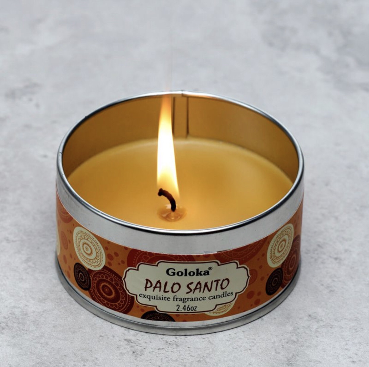 Product Description Palo Santo Wax Candle Material: Wax (50% Paraffin Wax, 45% Soy and Palm Wax Mix) and Fragrance Palm Oil Information: Sourced from ethical sustainable sources. Approximate Burn Time: 6 Hours