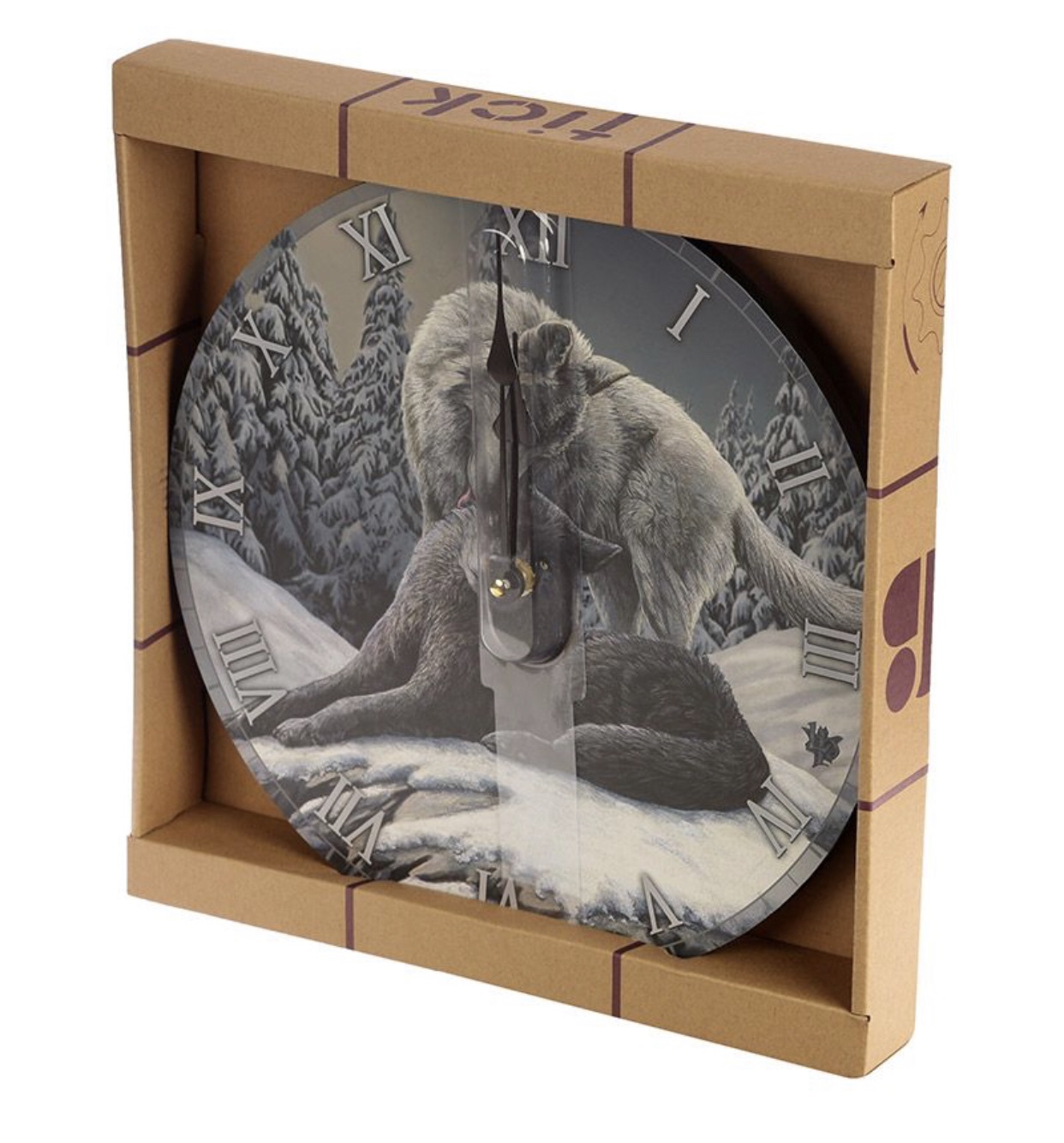 Product Description Lisa Parker Snow Kisses Wolf Picture Clock Material: MDF Battery Required: 1 AA Battery Included: No Wall Mountable: Yes