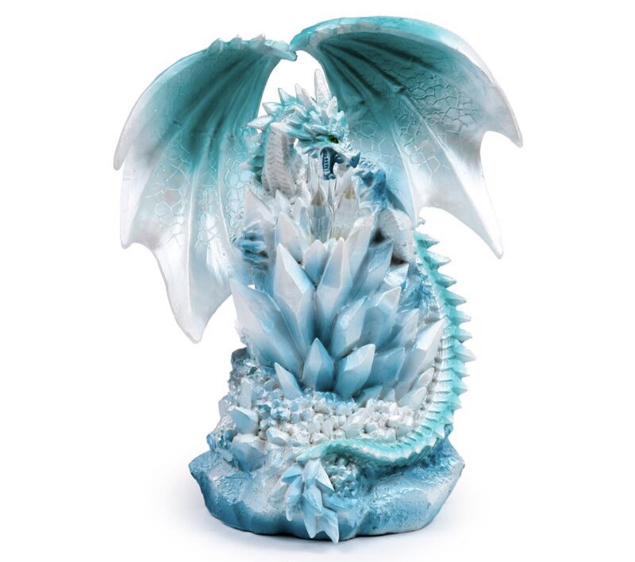 Product Description Dark Legends LED Crystal Quartz Dragon (20.5cm) Material: Resin and Plastic Batteries Required: 2 AA Batteries Included: No LED: Controlled by an on/off switch on the bottom.