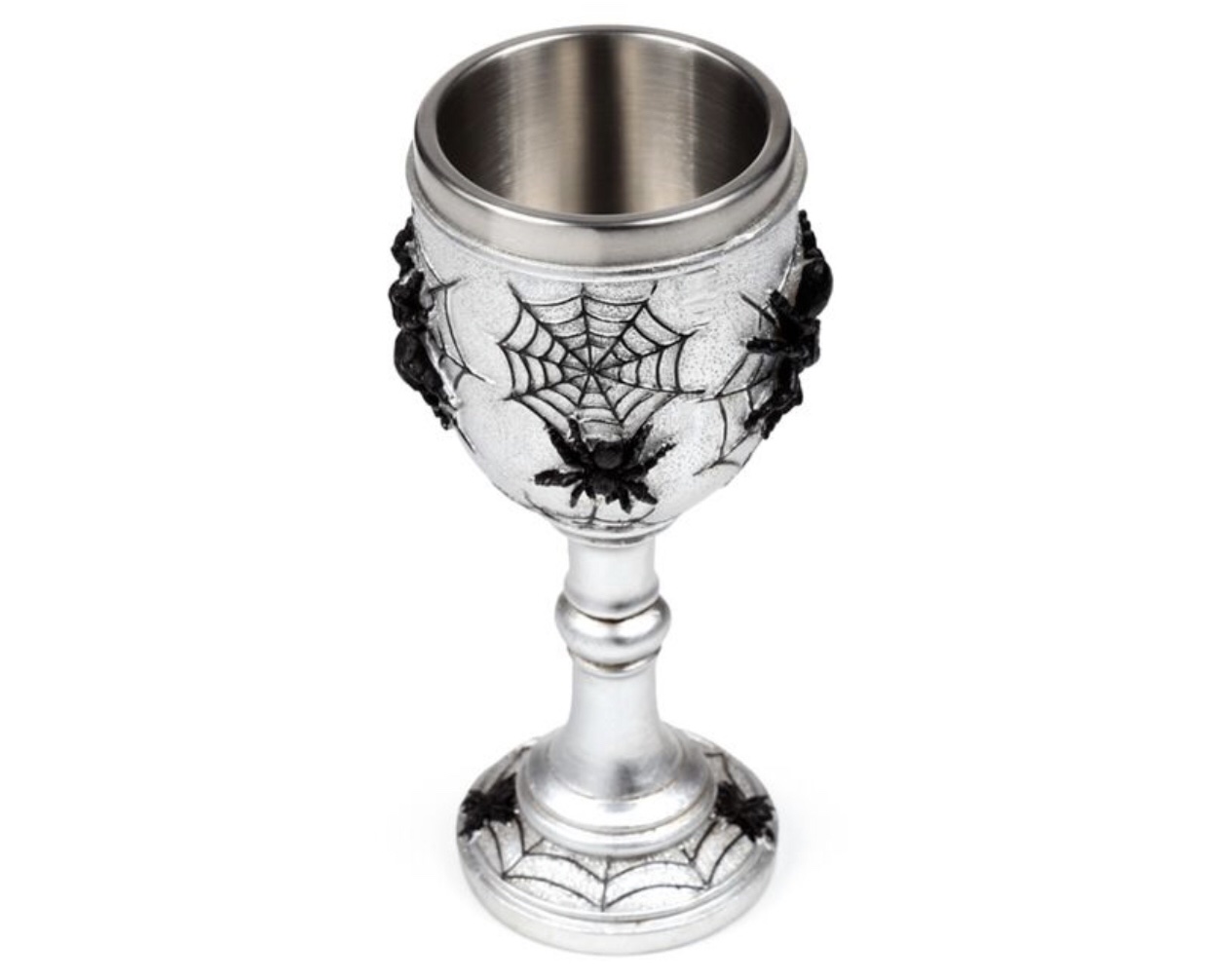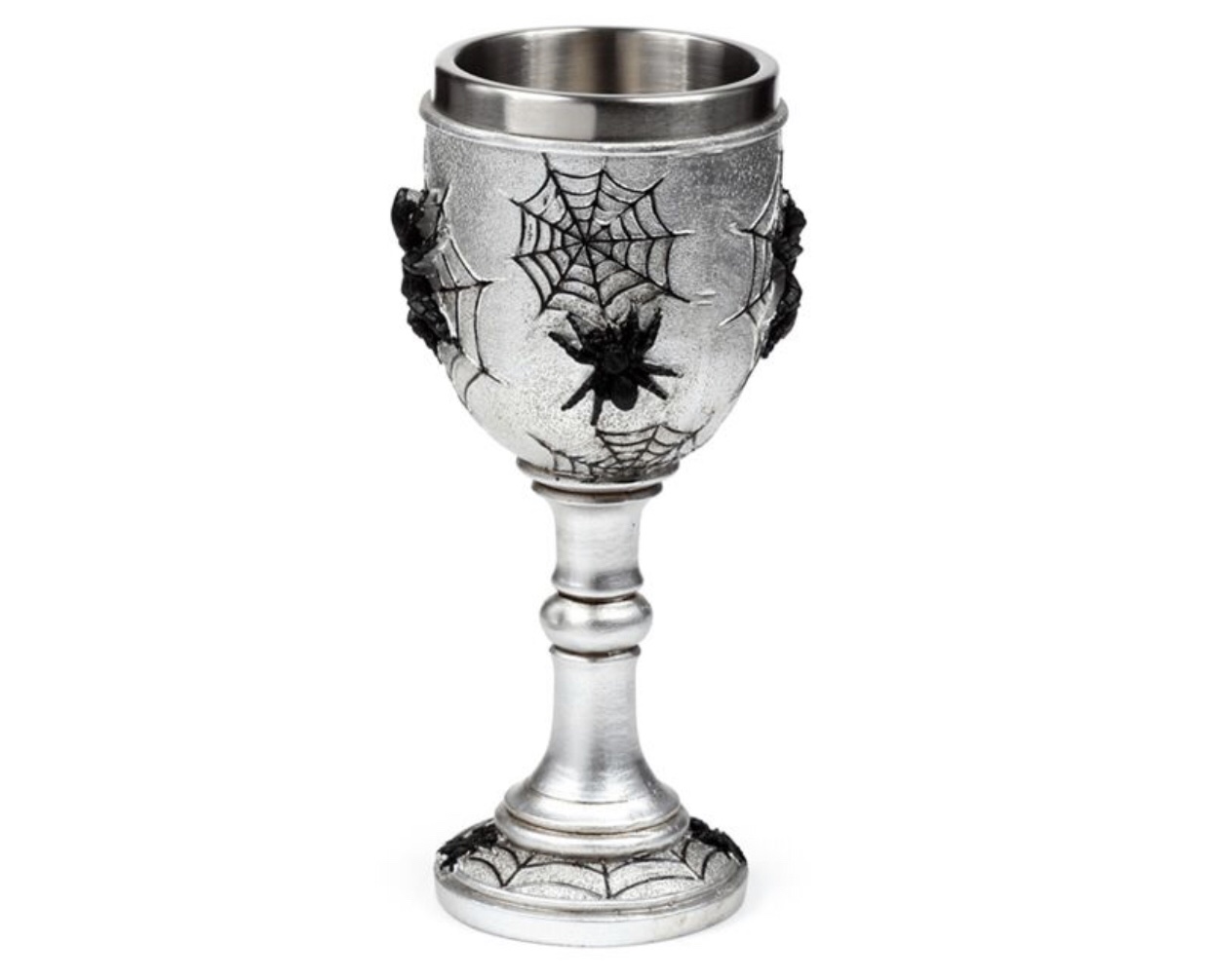 Product Description Decorative Spider Web Goblet Material: Resin and Stainless Steel Decorative Only: Yes