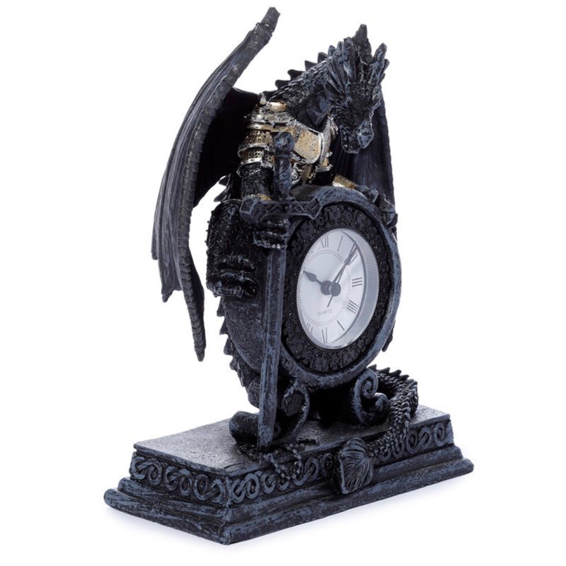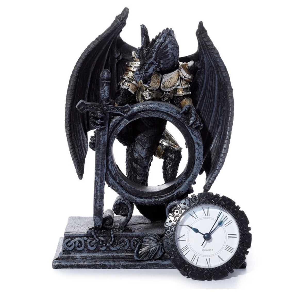Gothic Style Dragon in Armour Mantle With Sword Clock (20cm) (Black/Gold)