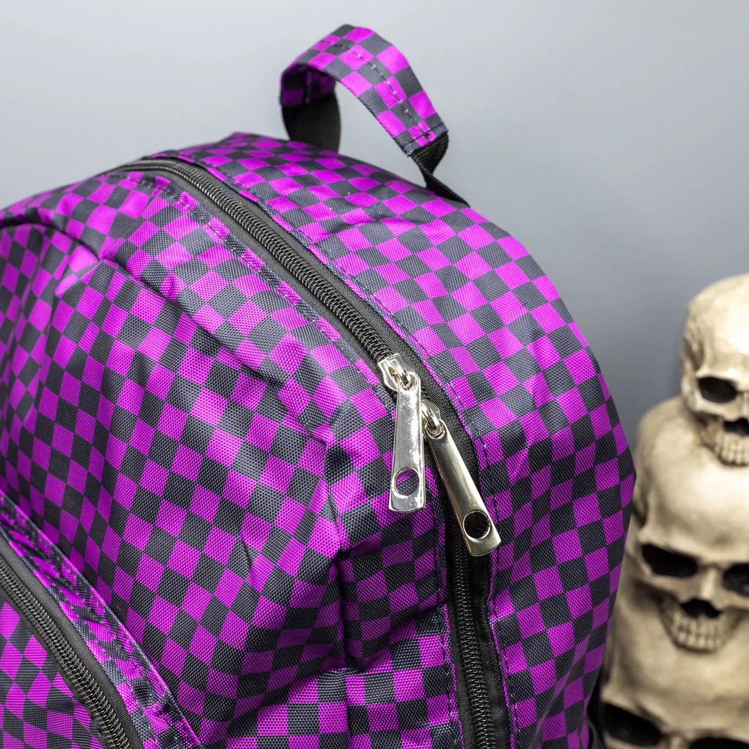 Gothic / Alternative Purple Checkerboard Backpack Bag With Gothic Chain (Purple/Black) (42cm)
