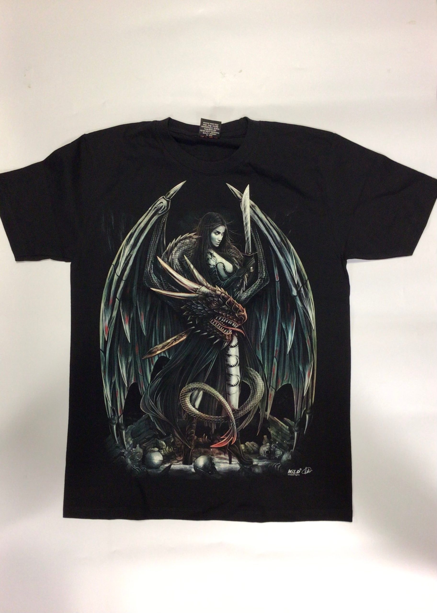 Gothic Designs Dragon Lady Sword Warrior Dragon Companion Adventure Gothic T-shirt (Double Sided)