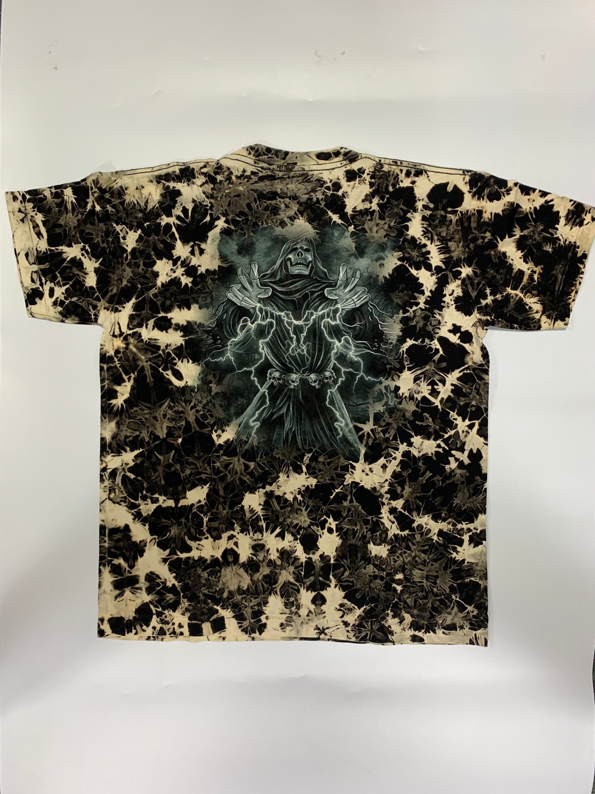 Gothic Designs Grim Reaper With Scythe Lightning Dungeon Gothic T-shirt (Double Sided) (Tie-Dye)