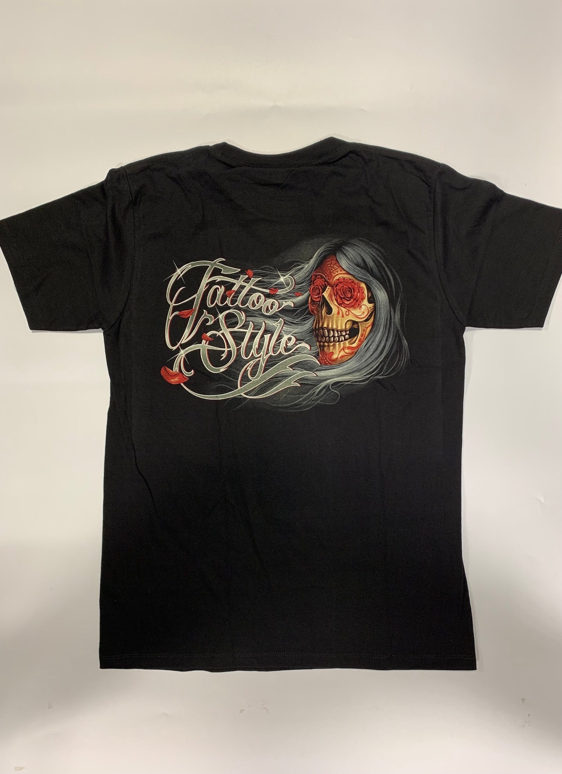 Gothic Designs Lady With Tattoos And Roses Beauty And The Mirror T-shirt (Double Side)