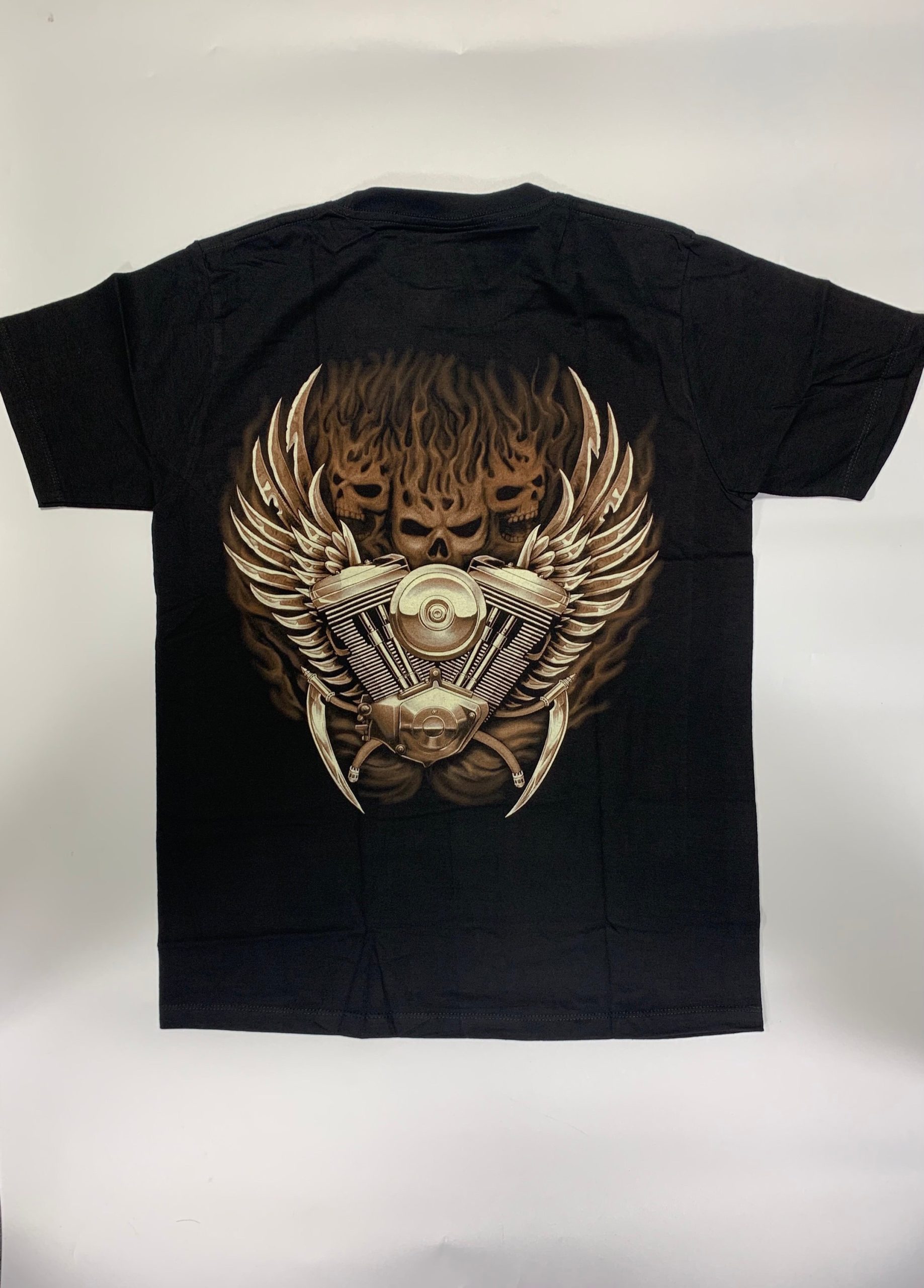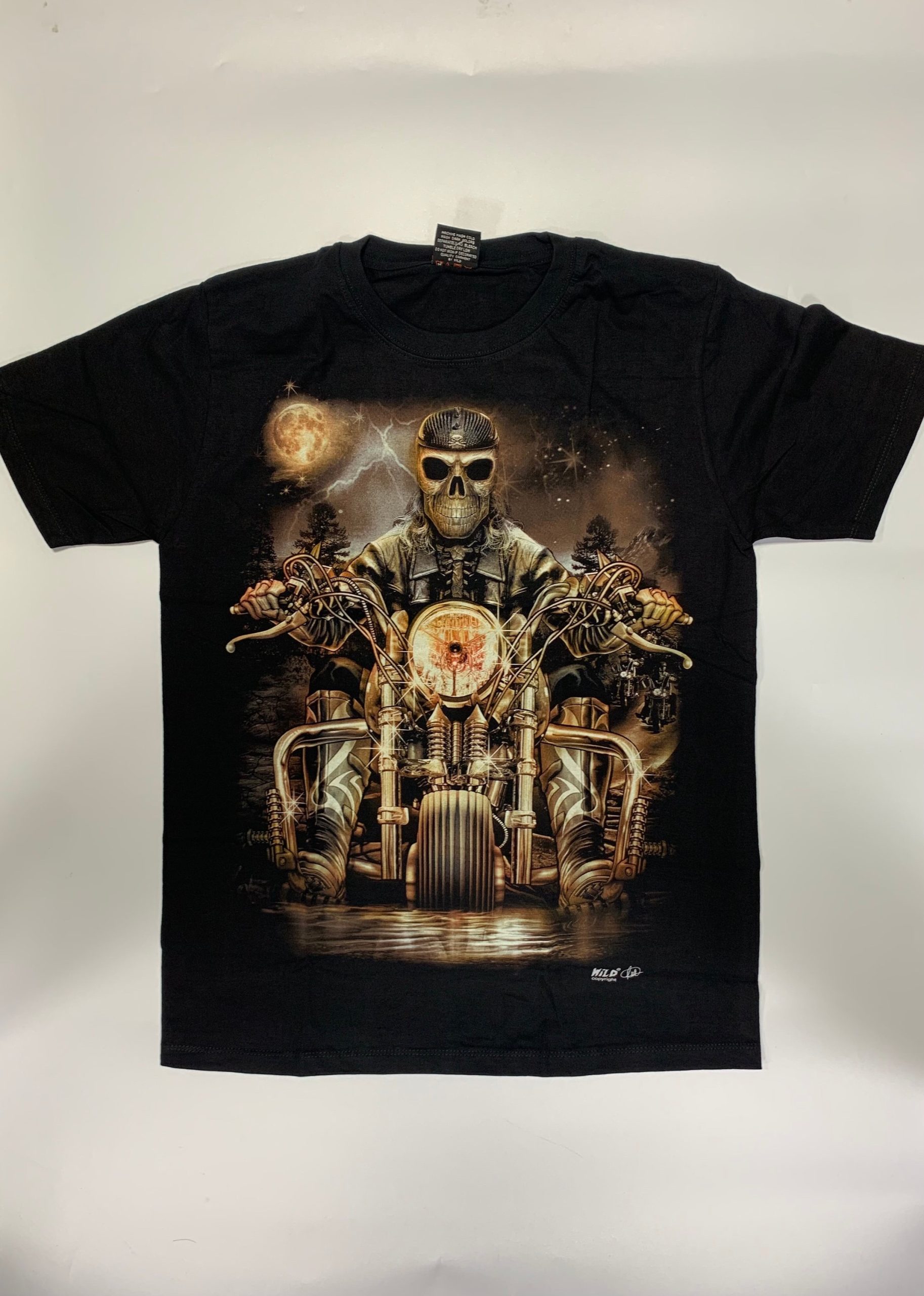 Gothic Designs Skeleton Bike Rider Midnight Biker Crew Gothic T-shirt (Black)(Double Sided)