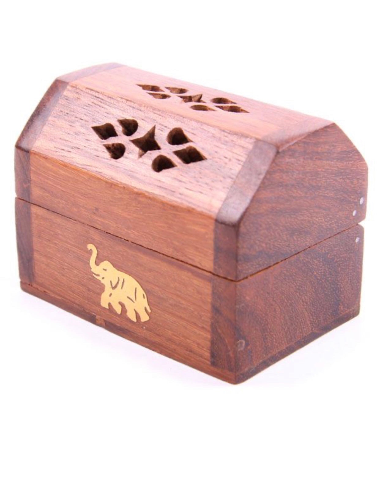 IF170 Mini Incense Cone Burner Box Elephant Inlay(Sheesham Wood) (Brown) (6cm) Material:Â Sheesham Wood For Use With:Â Incense Cones Dimensions:-Â Height 6cm Length 8cm Depth 5cm