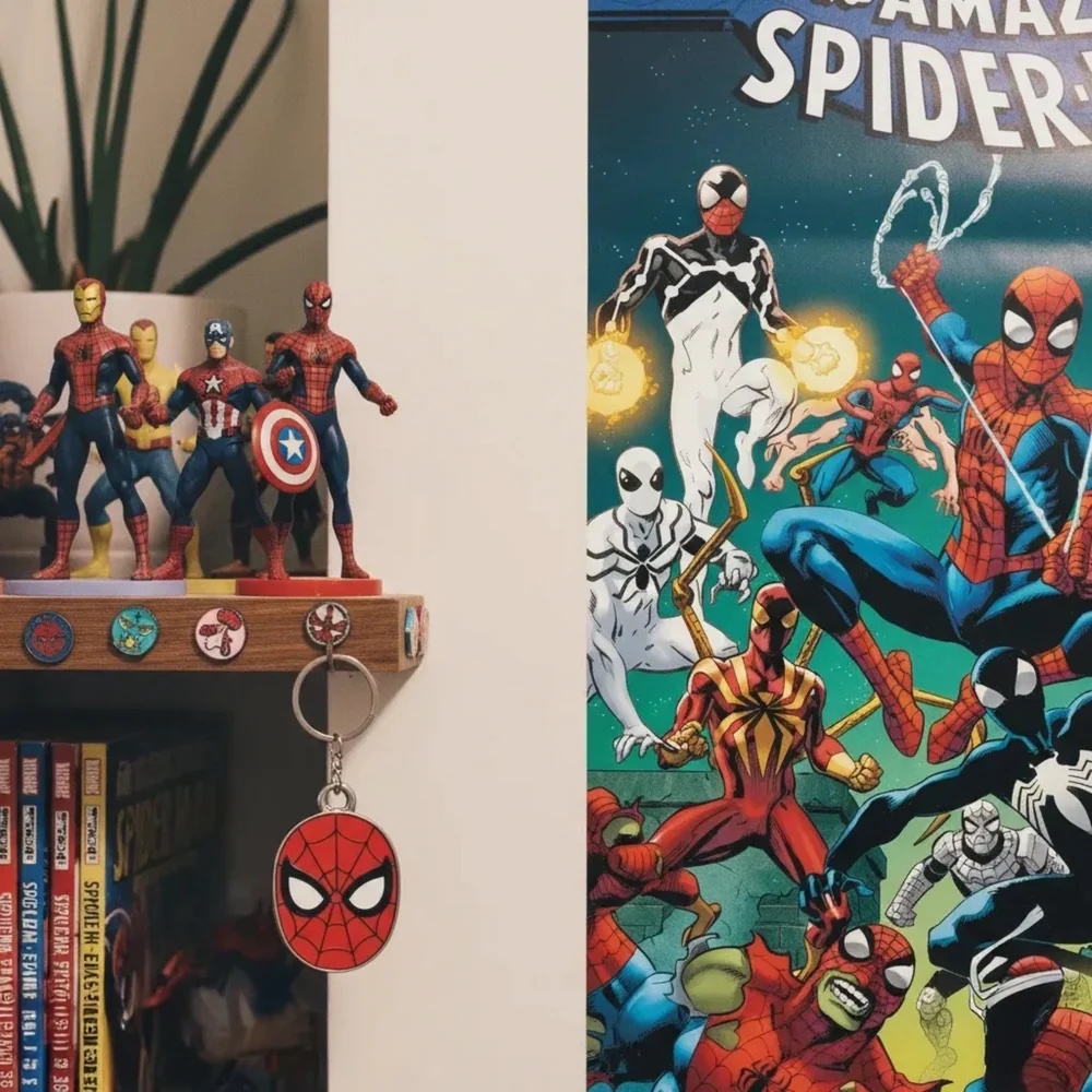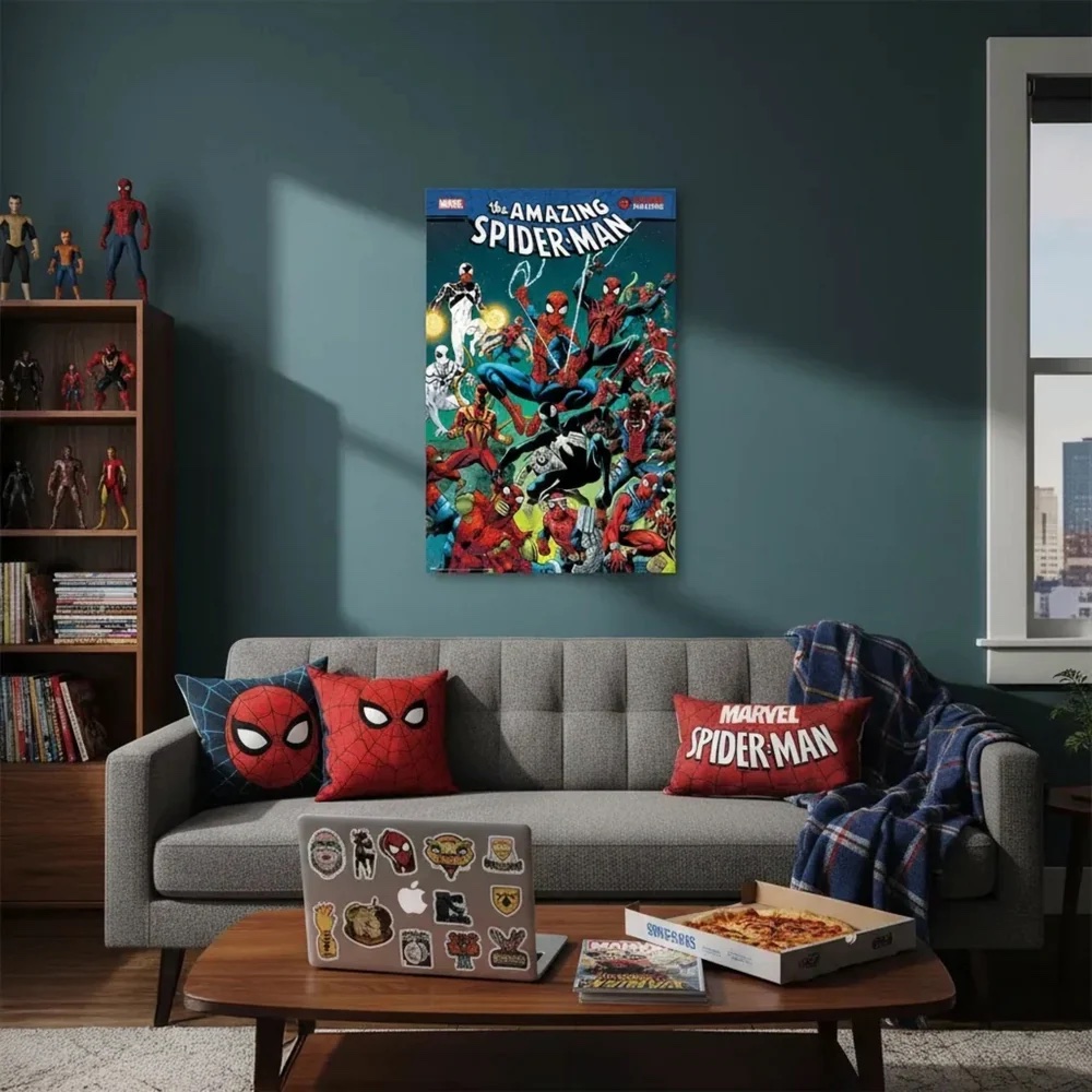 ✅ Dynamic Spider-Man Artwork – Showcasing Spidey in full costume, leaping into action against a bold, web-inspired backdrop.