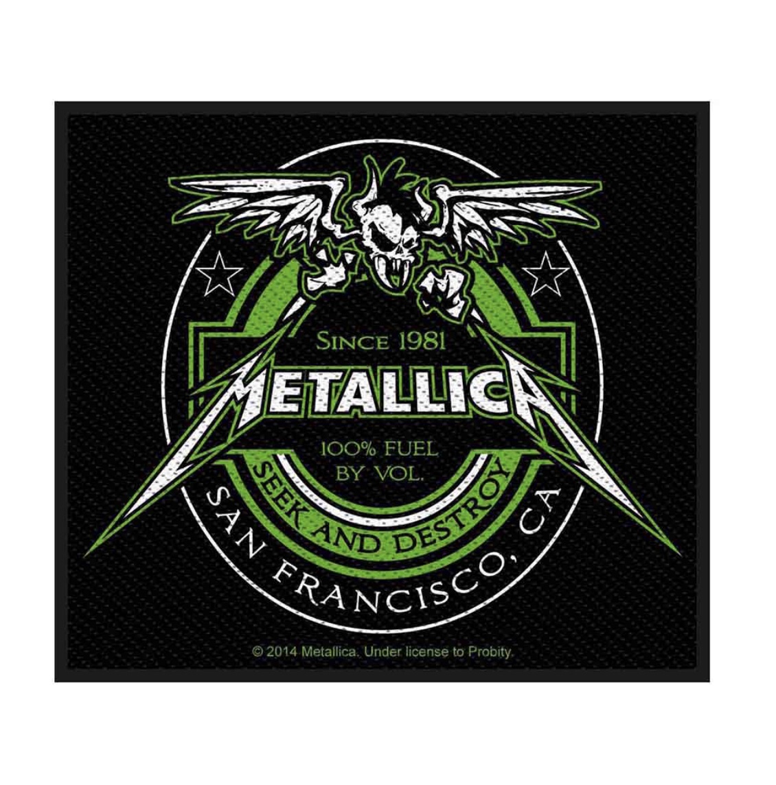 Official licensed Metallica Woven Patch featuring the ‘Beer Label’ design.