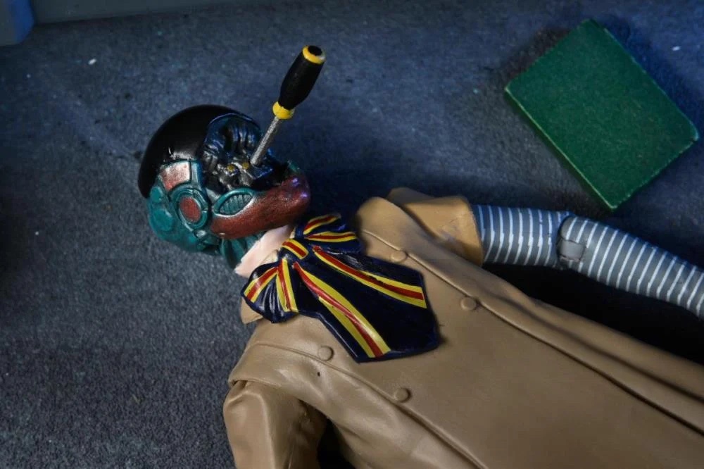 This 7-inch scale M3GAN figure features full articulation and captures her on-screen look with impressive detail. Accessories include interchangeable heads and hands, a battle-damaged head, a robot head with swappable faceplates, a screwdriver, nail gun, hammer, and paper cutter blade. A standout addition to any collection, she comes in a display-friendly window box with an opening front flap.