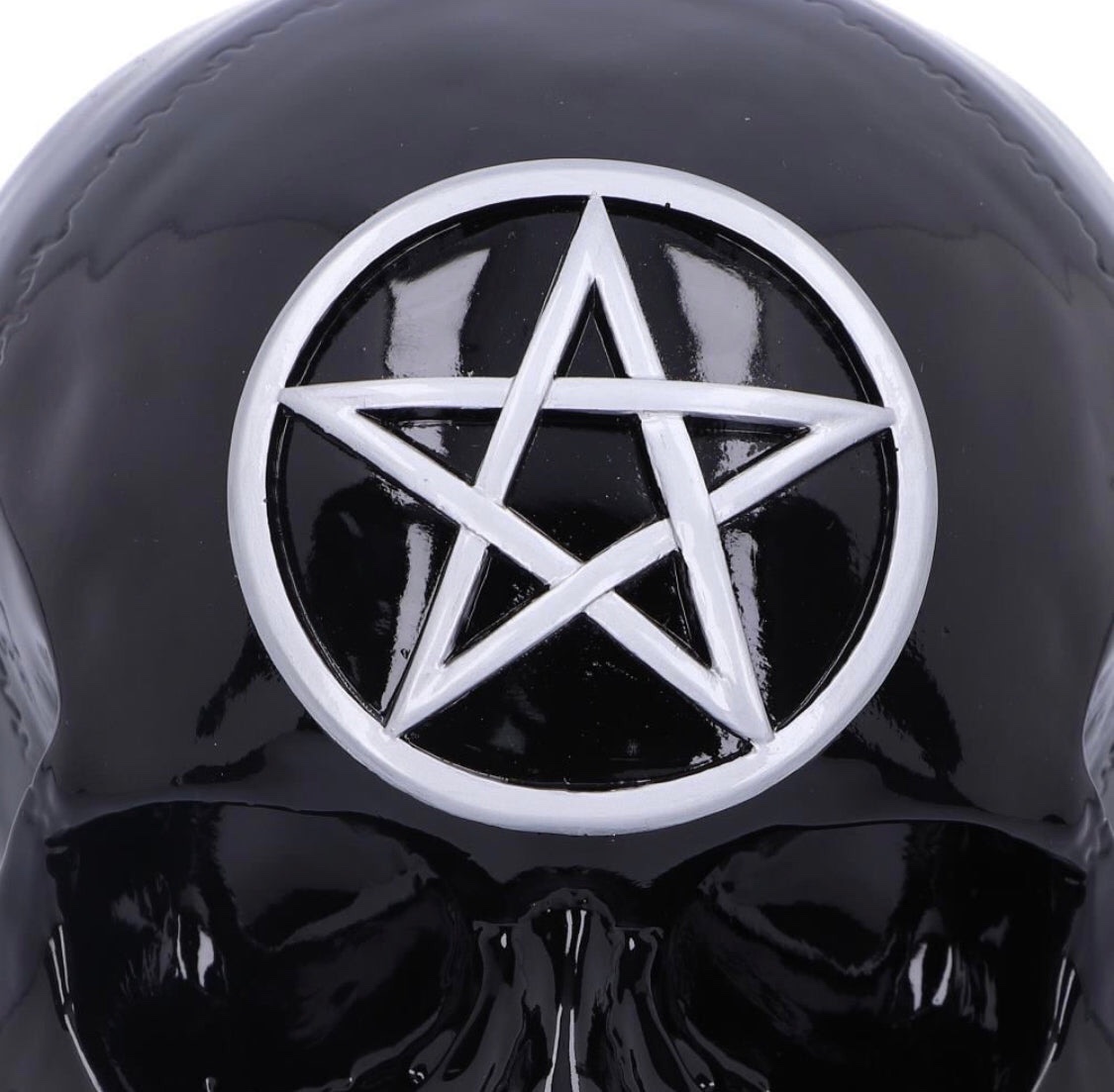 Pentagram Skull. Cast in the finest resin. Expertly hand-painted. Size 19.5cm.