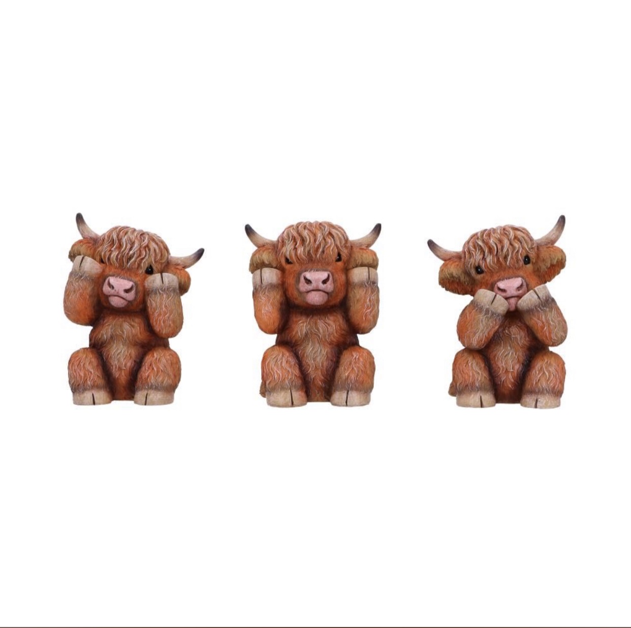 Nemesis Now© “Three Wise Highland Cows” Cow Figurines (9.6cm) (Brown)