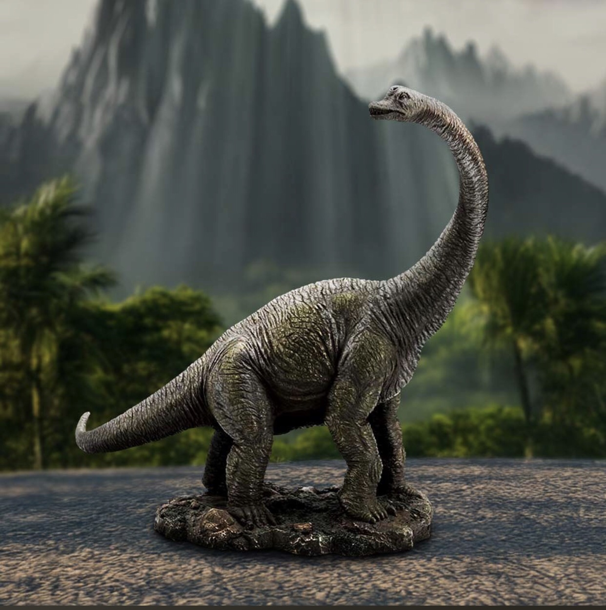 This figurine is a highly detailed 25.5 cm Branchiosaurus, standing tall on a realistic rocky base to replicate its natural prehistoric habitat.