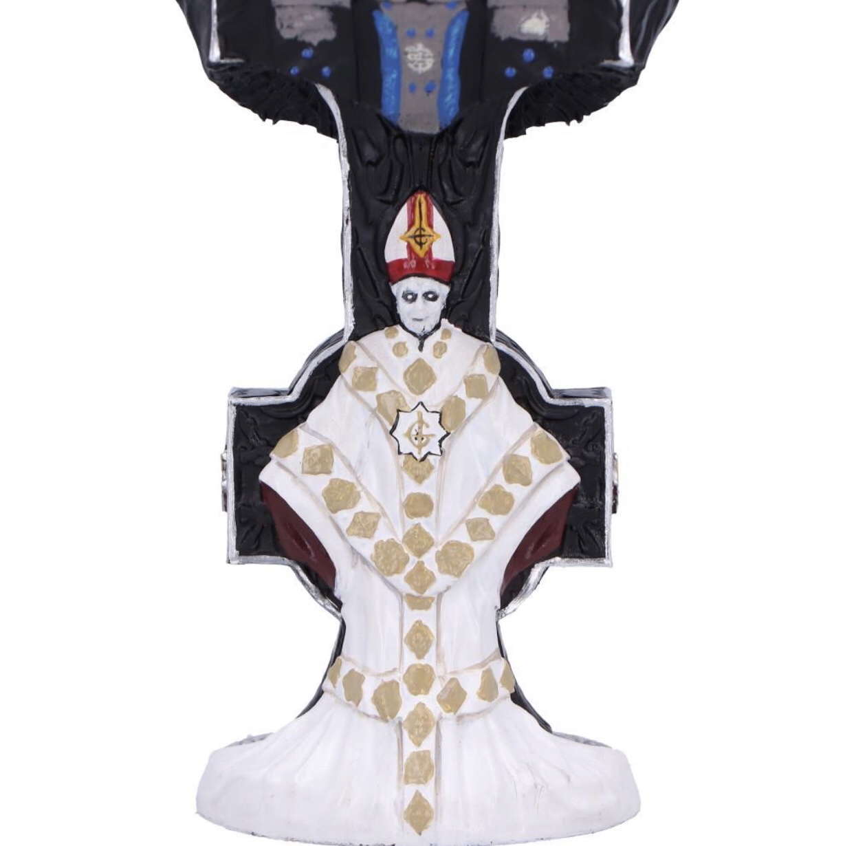 Material:Polyresin Officially licensed Ghost merchandise Collectible goblet featuring Ghost’s Papa Emeritus Removable stainless steel insert Expertly hand-painted