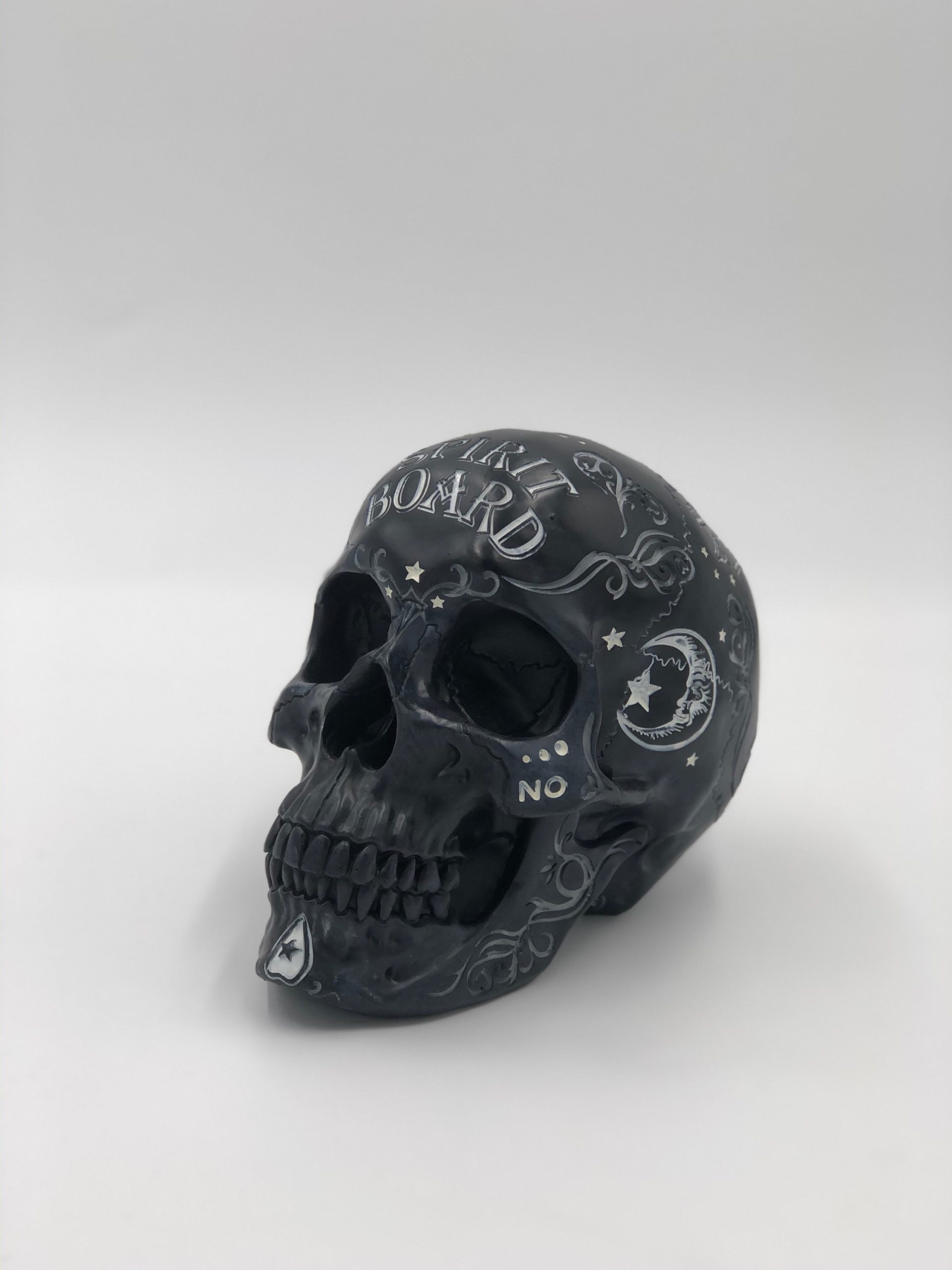 Black and White occult Spirit Board Skull. Cast in the finest resin. Carefully hand-painted. Perfect for any horror enthusiast. Material :- Polyresin