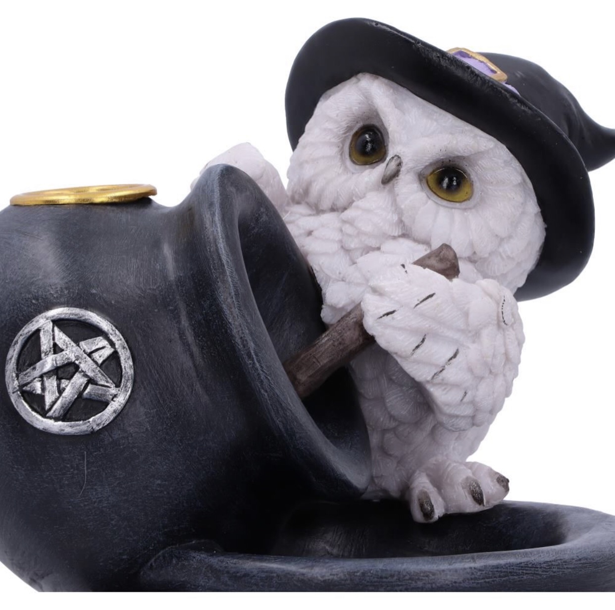 Nemesis Now© “Snowy Brew Owl Witch Pentagram” Backflow Burner (17cm)