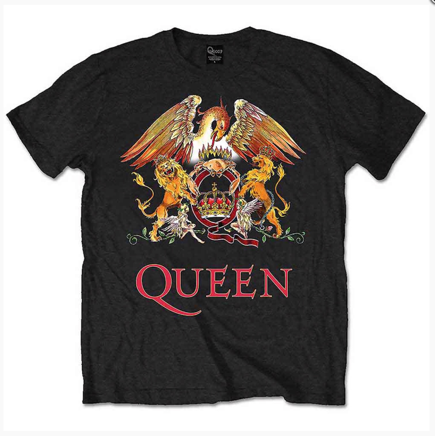 An official licensed Queen Unisex T-Shirt featuring the ‘Classic Crest’ design motif. This high quality T-Shirt is available in a black colourway.