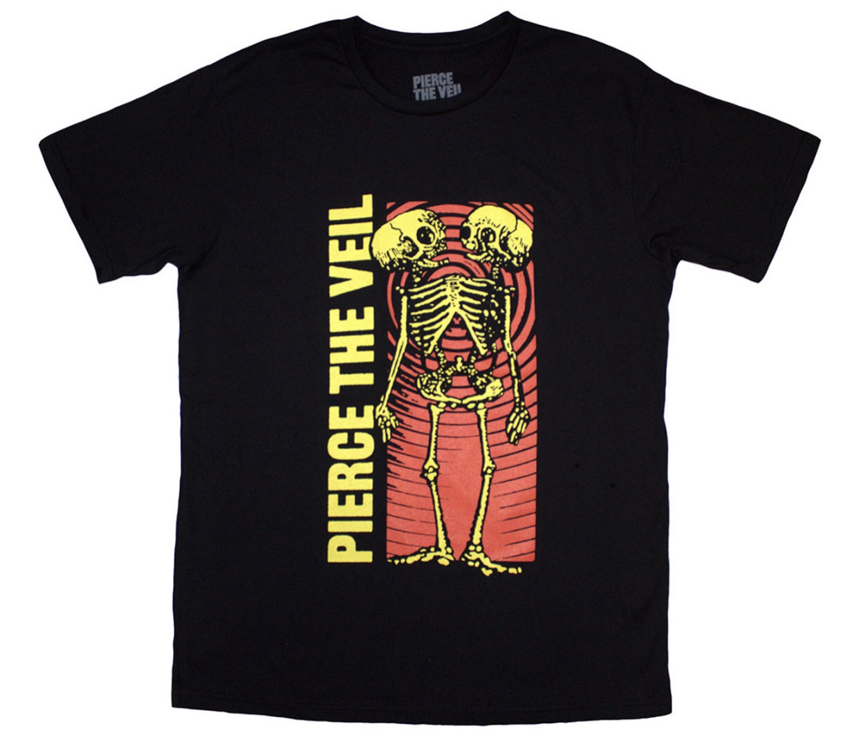 An official licensed Pierce The Veil T-Shirt featuring the Wavy Skeleton design motif.