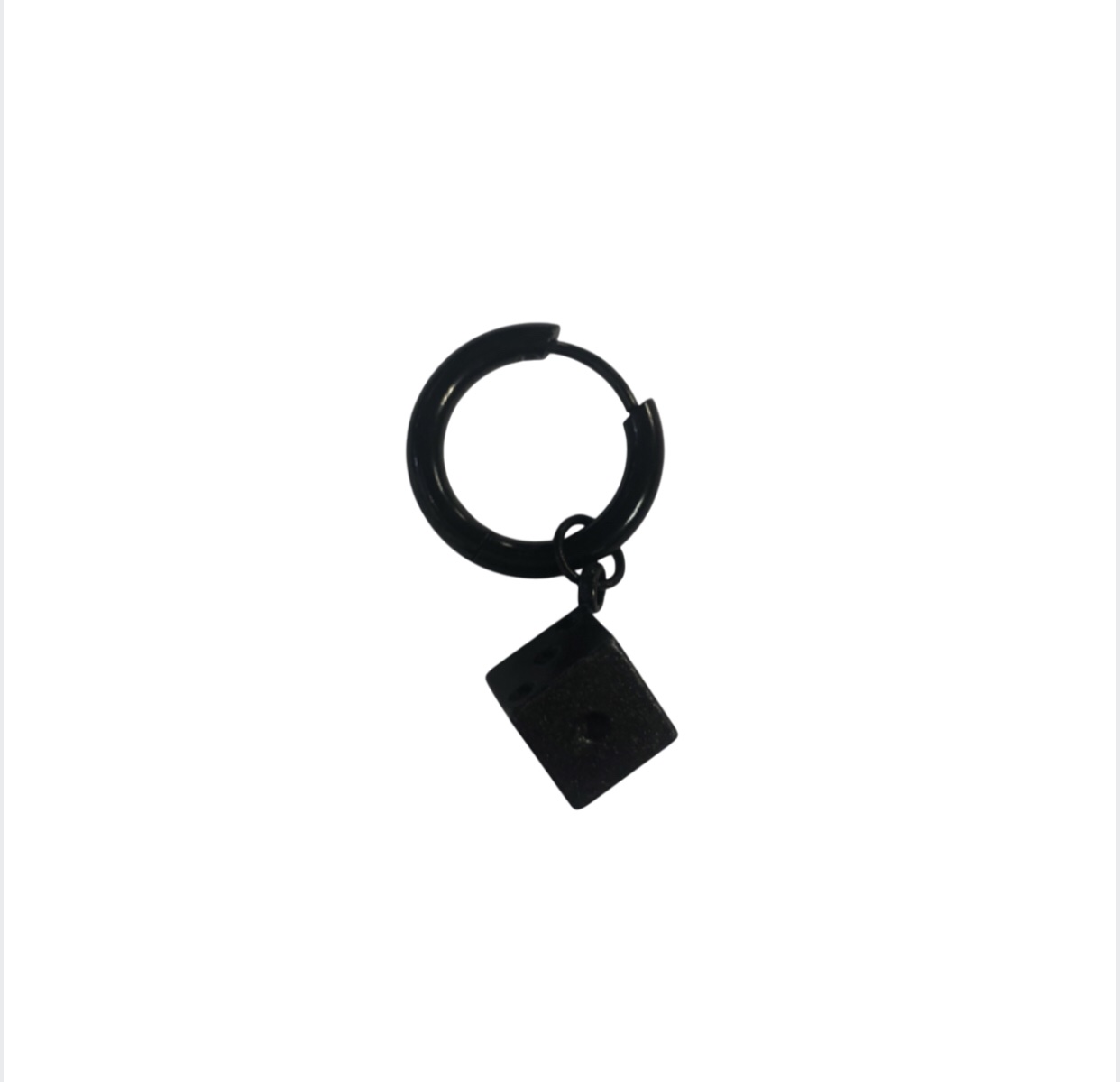 Piercing 3D Square Cube Earring (Unisex) (Single) (Black)