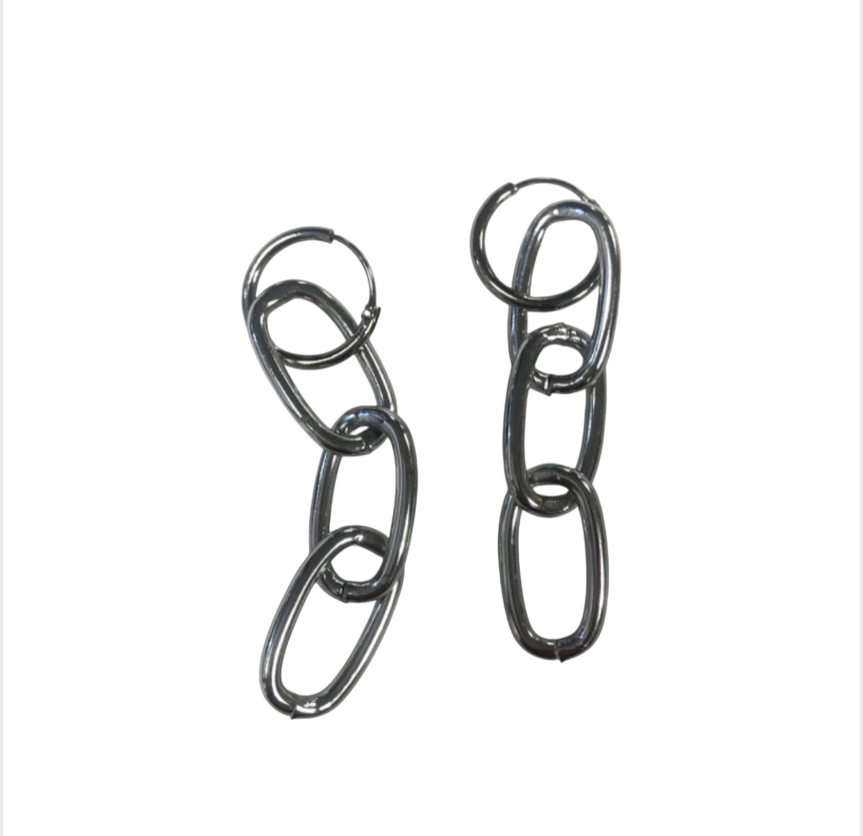Piercing Chain Earrings (Unisex) (Silver)