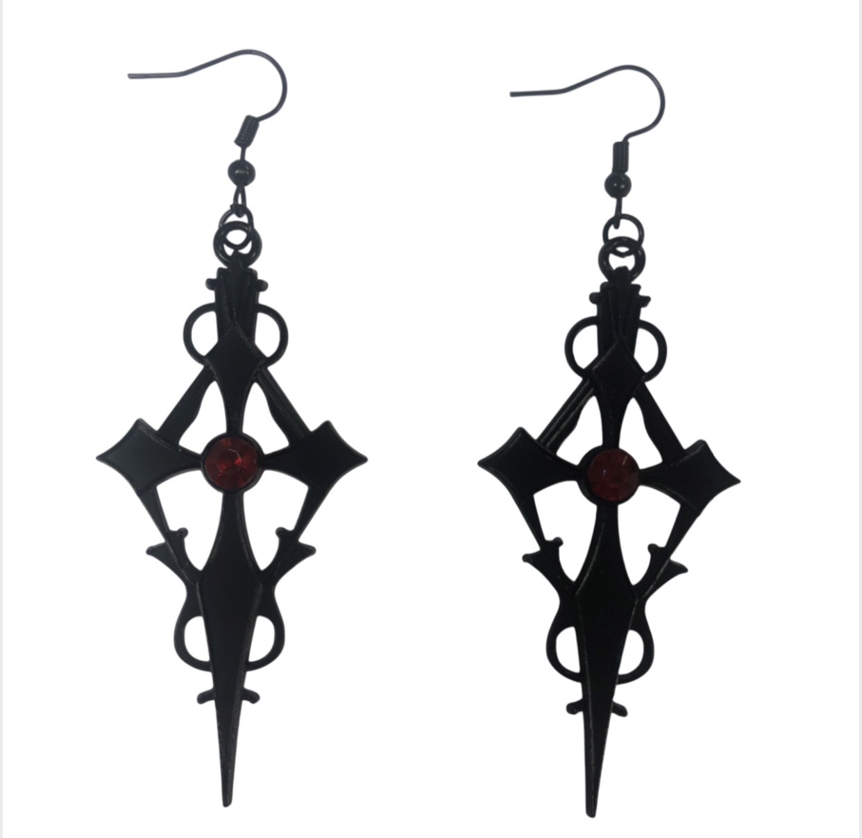Piercing Cross With Red Stud Earrings (Unisex)