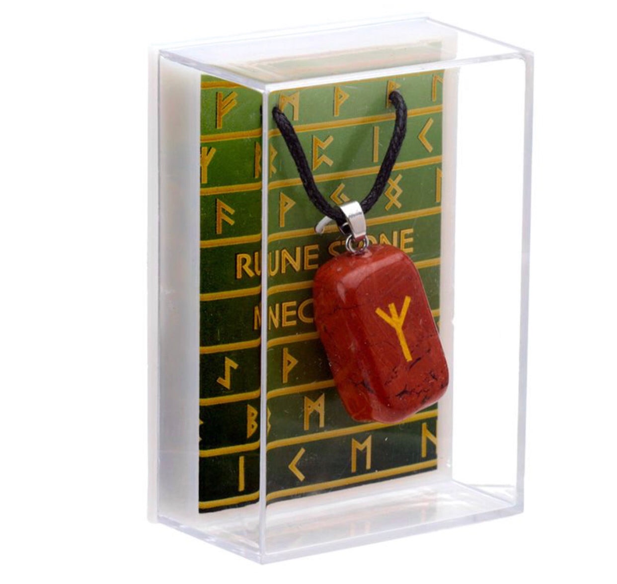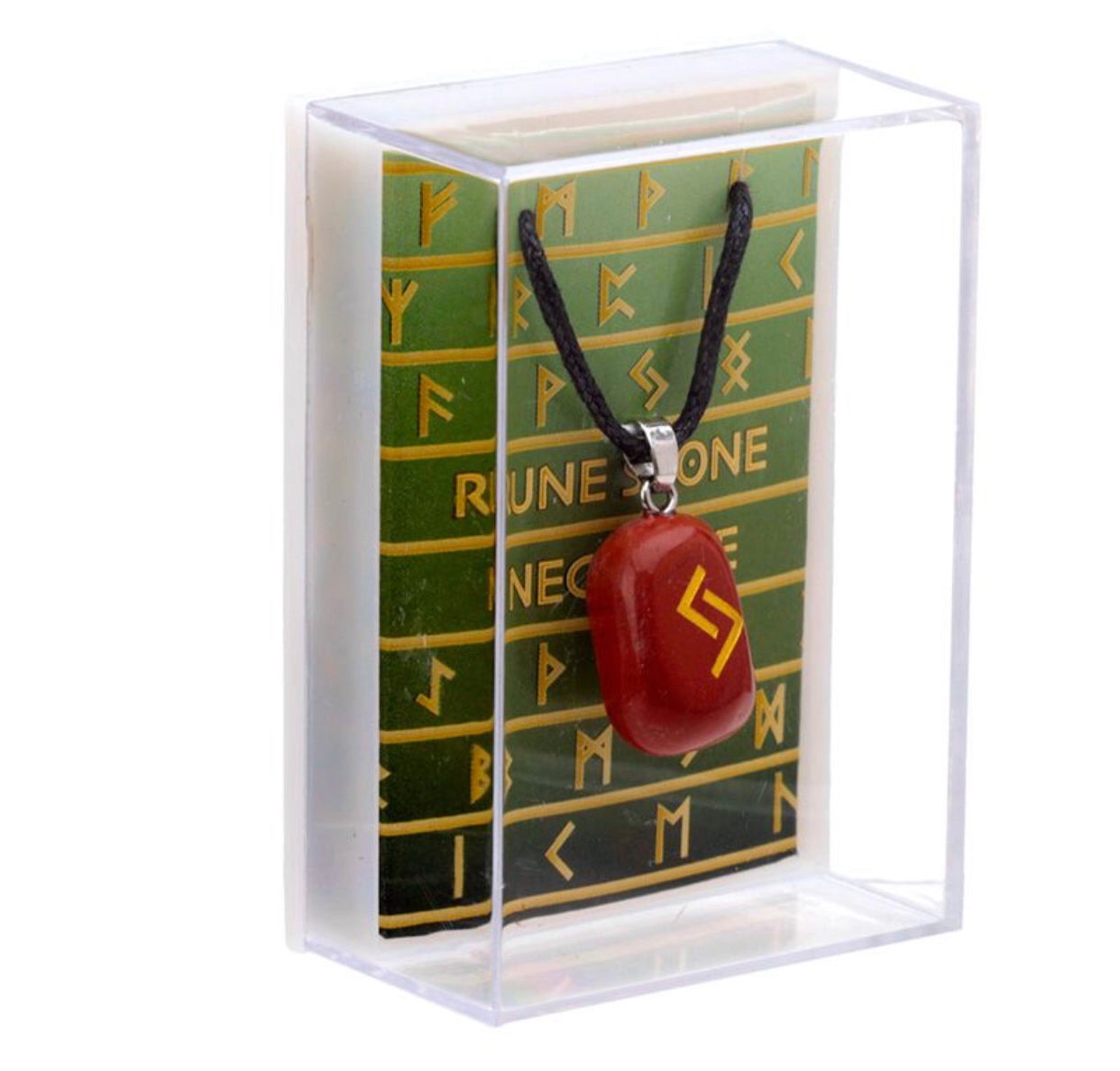 Product Description Rune Stone Pendant Material: Gemstones, Metal and Waxed Cord Product Attributes More Information Product Attributes More Information Dimensions:- Height 2 – 3cm Width 2 – 3cm Depth 1 – 2cm