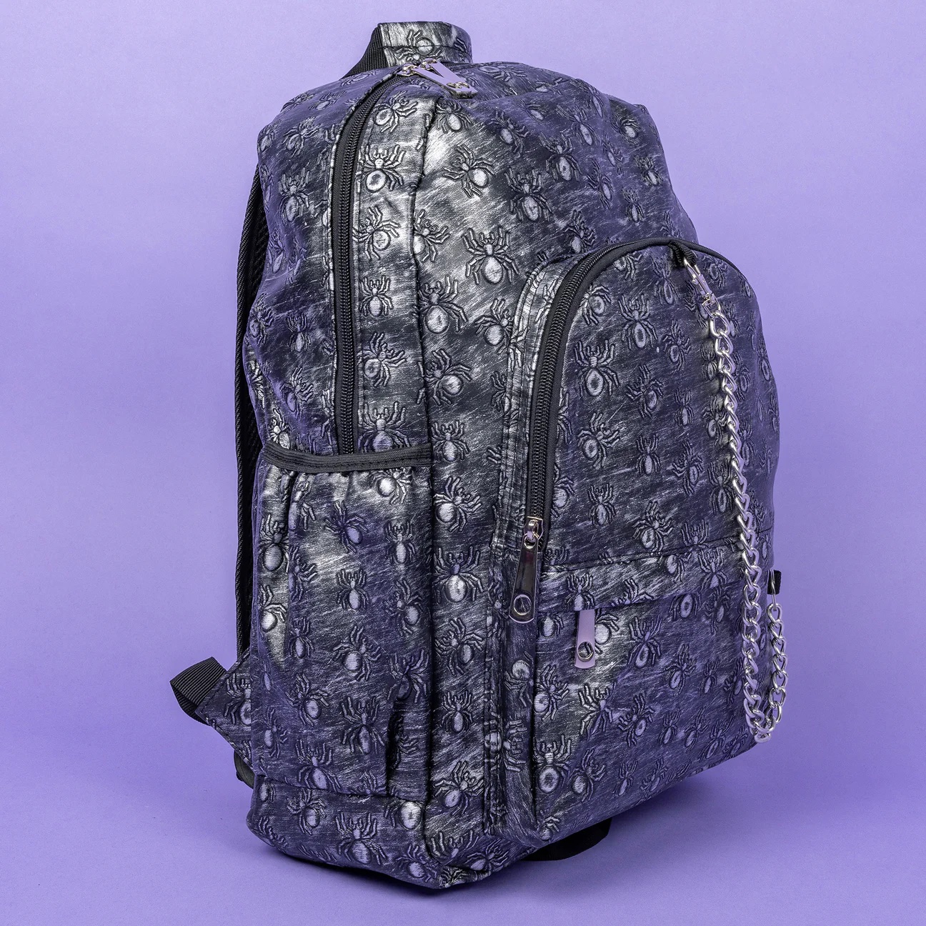 We’ve caught you in our web! This Rustic Silver Spider Backpack features a unique spider pattern and shine with a rustic silver finish. Perfect for expressing your magical side.