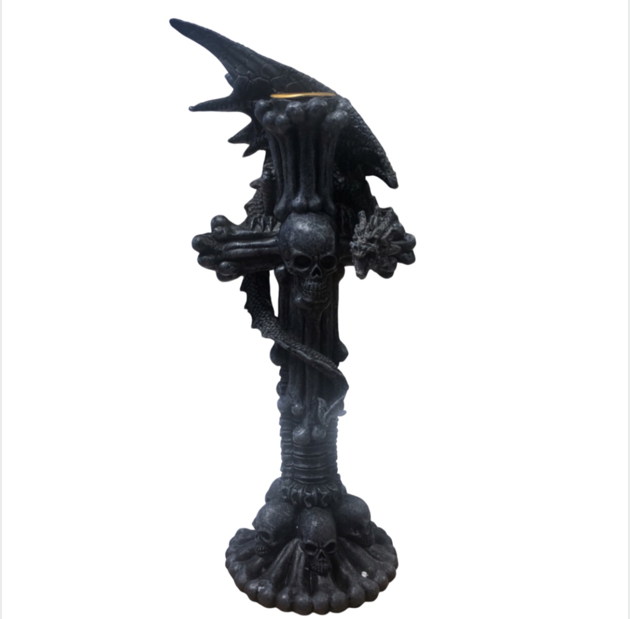 SACRED Black Skull Dragon Candle Holder Ornament (24cm)