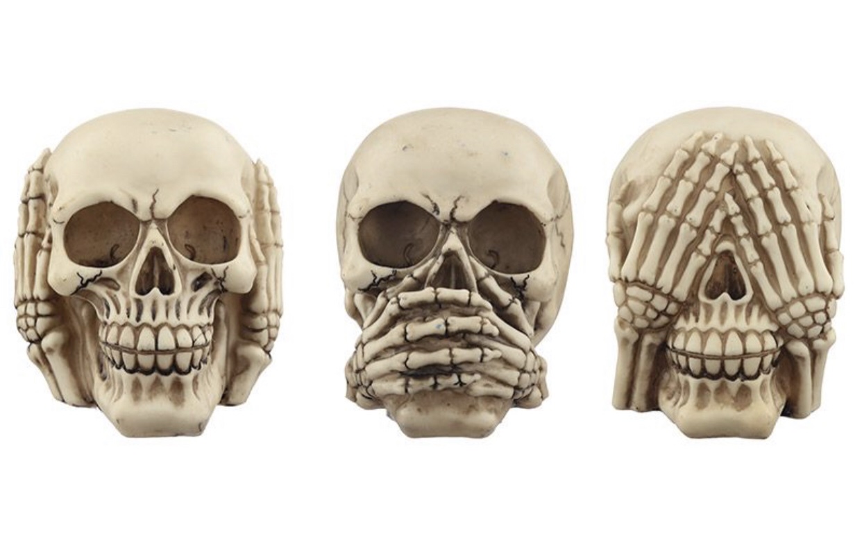 Set of 3 Hear No Speak No See No Evil Skulls Ornaments (11cm)