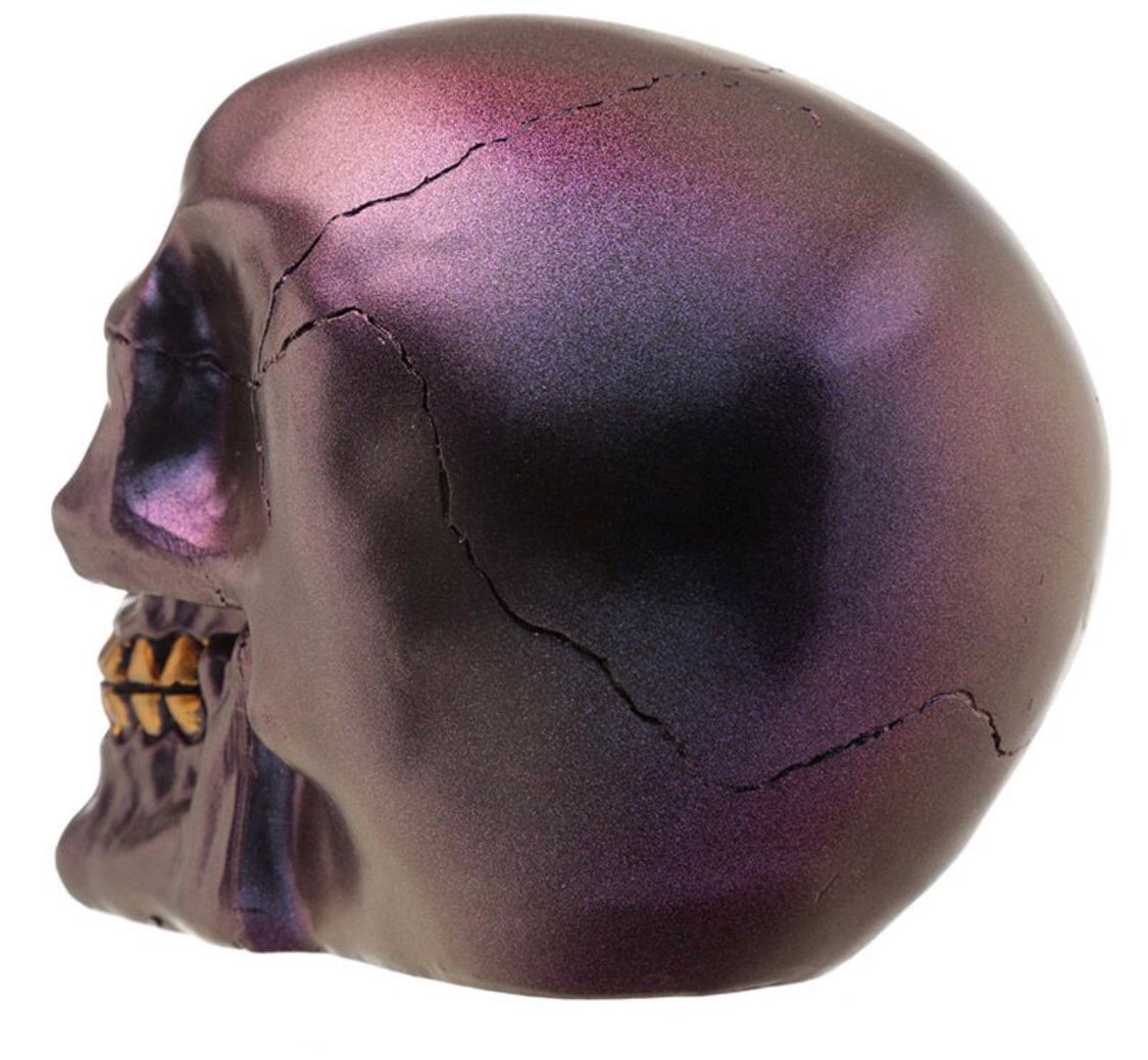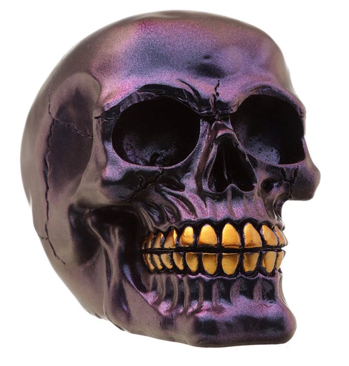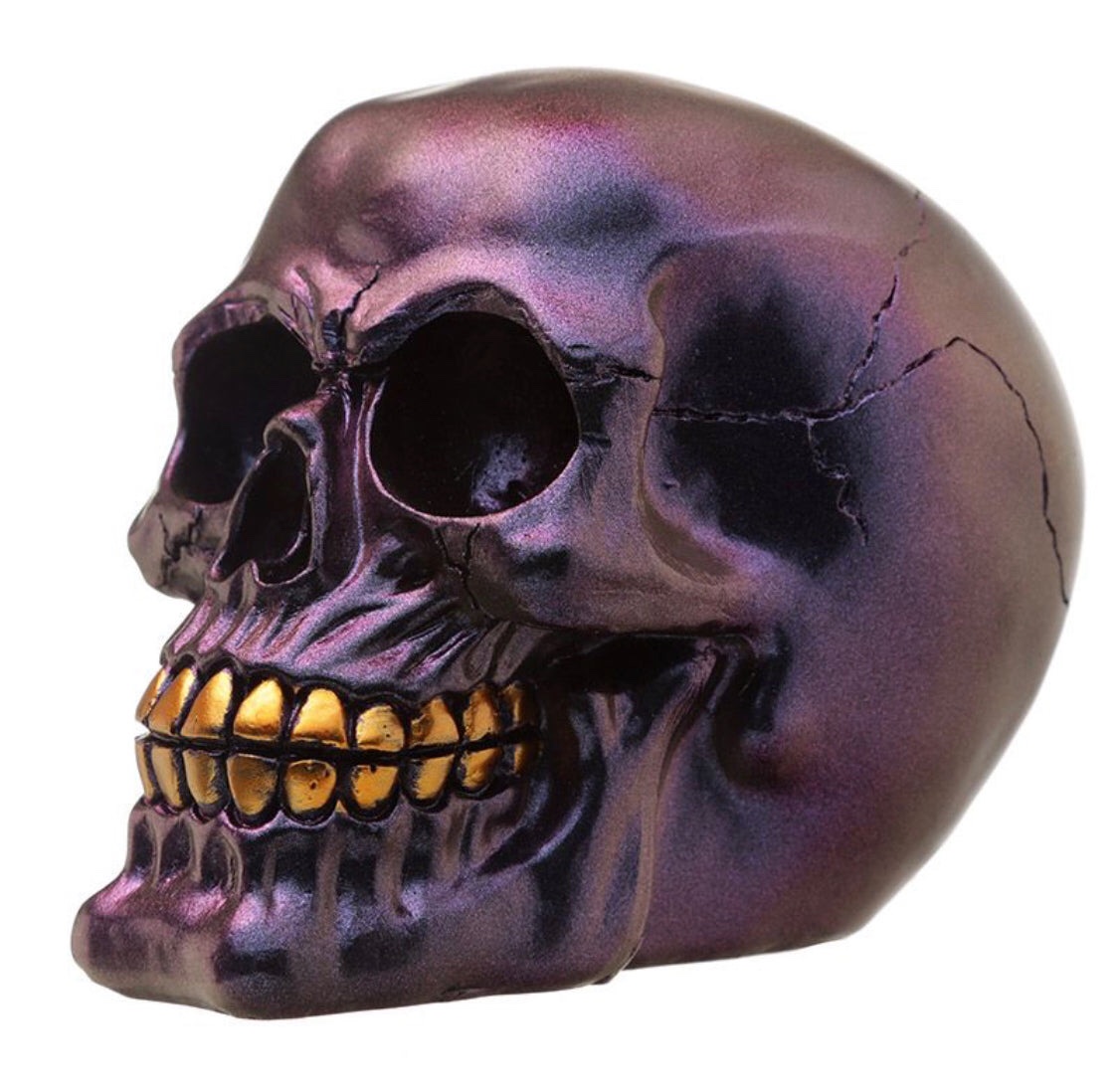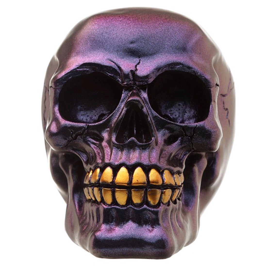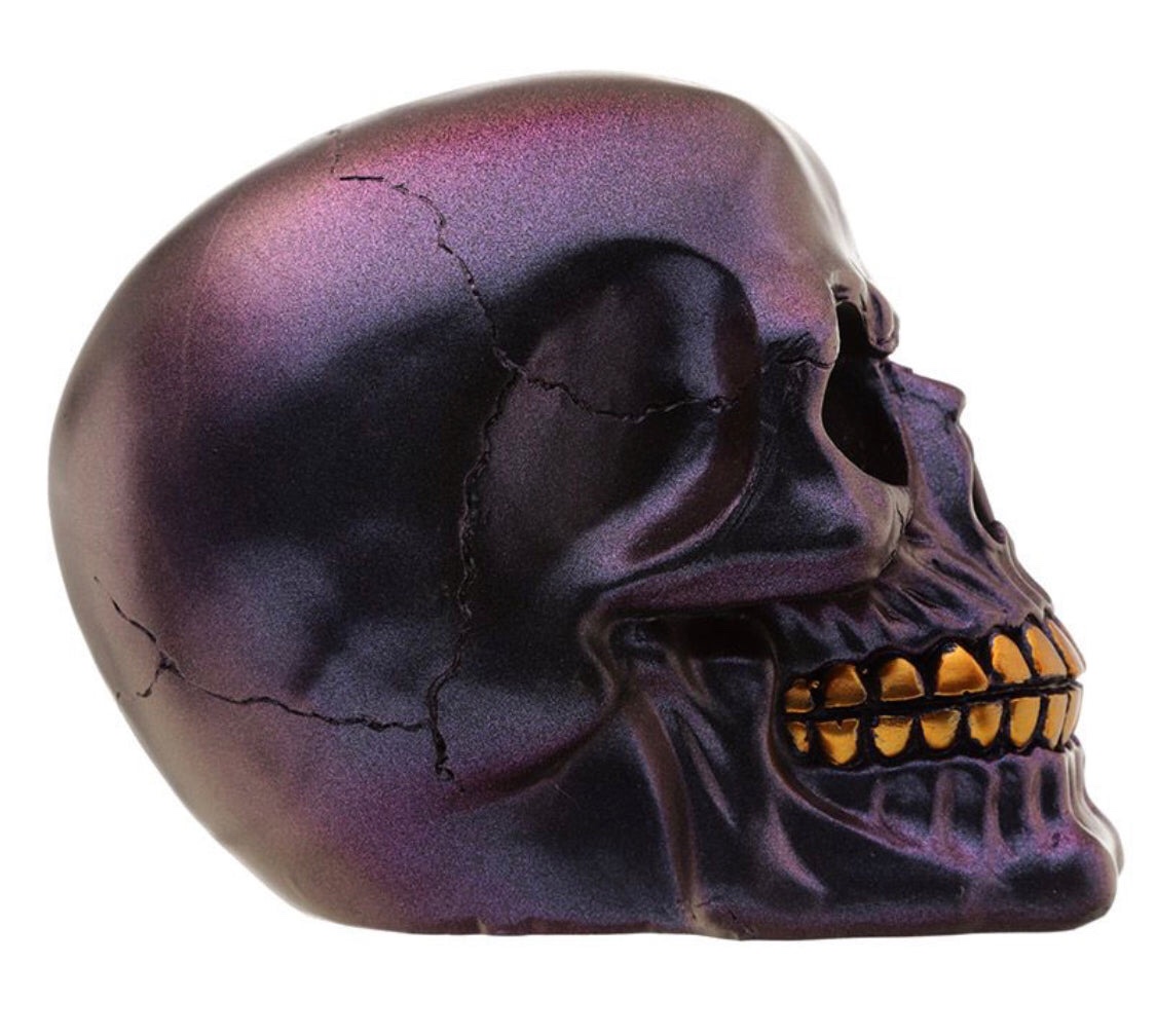 SK277 Dark Metallic & Gold Teeth Skull Ornament Decoration (Purple)