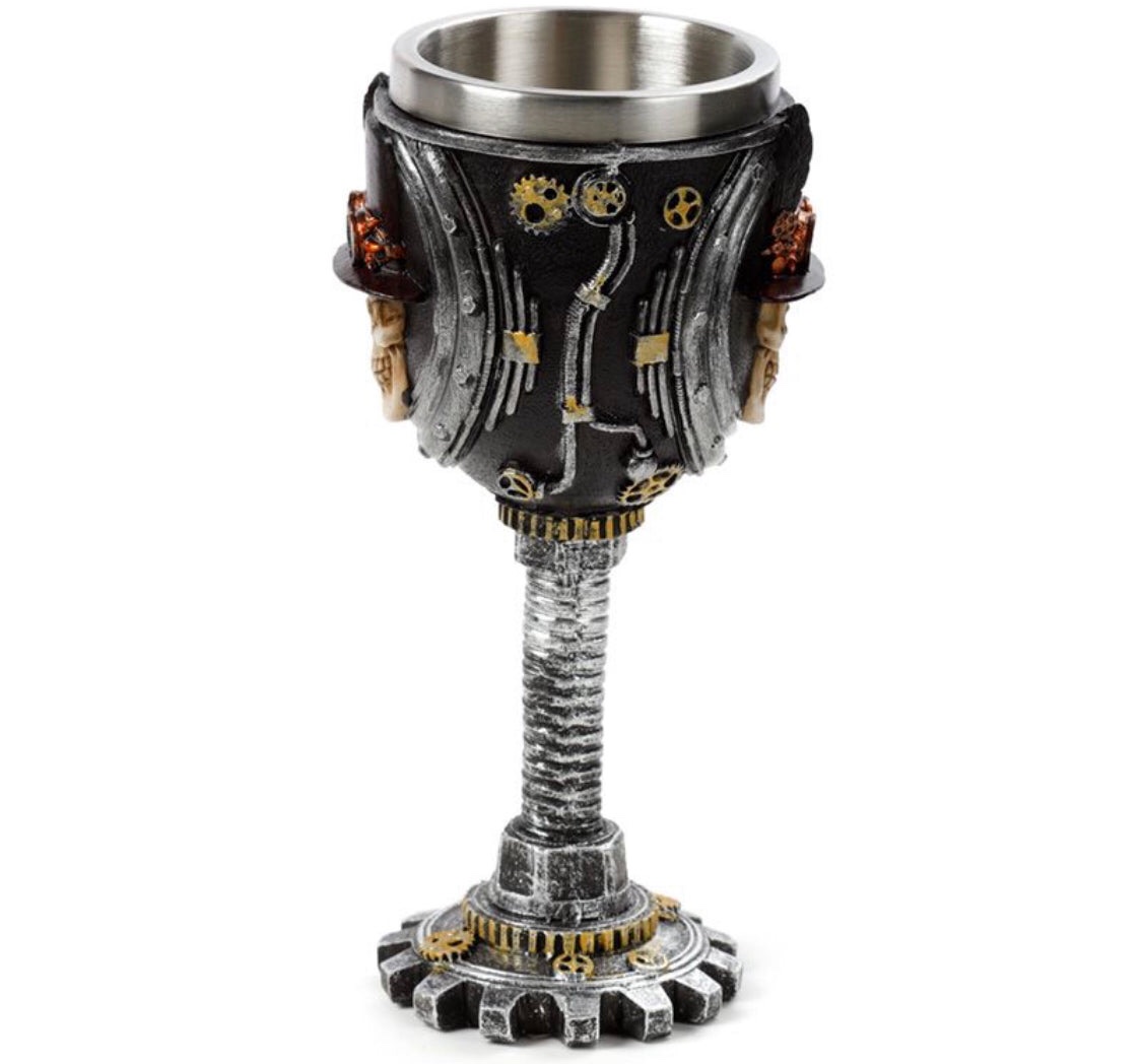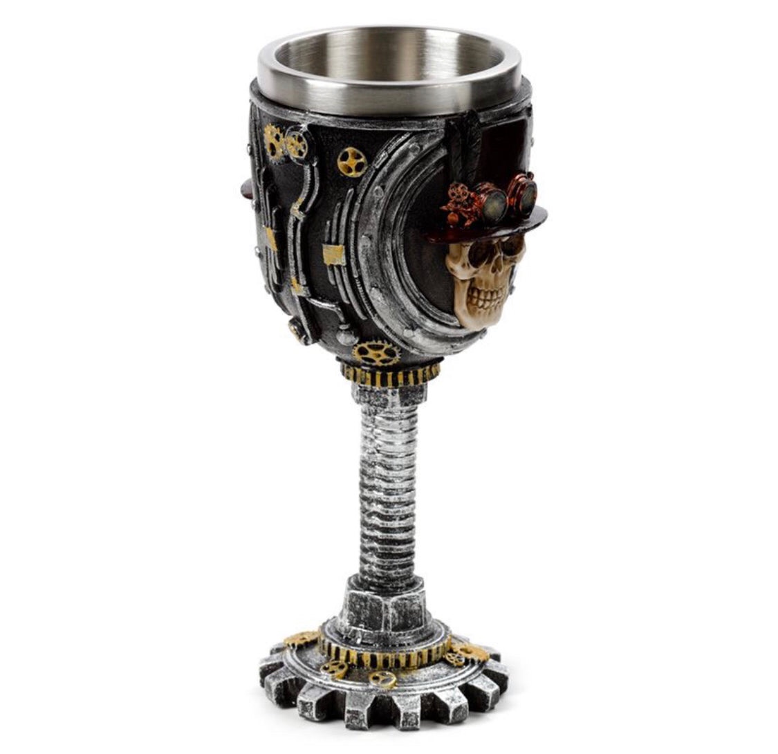 Product Description Decorative Steampunk Skull Goblet Material: Resin and Stainless Steel