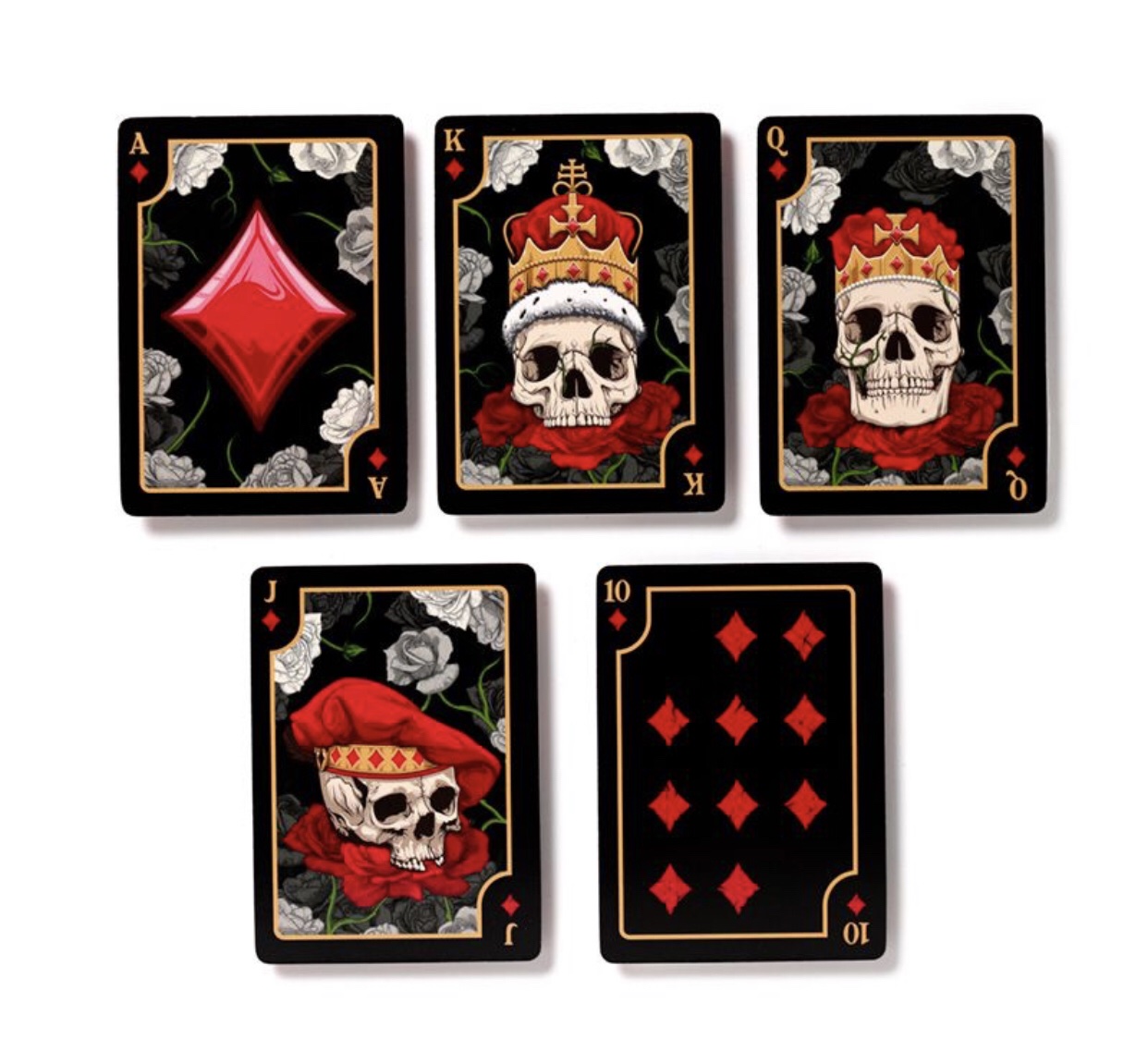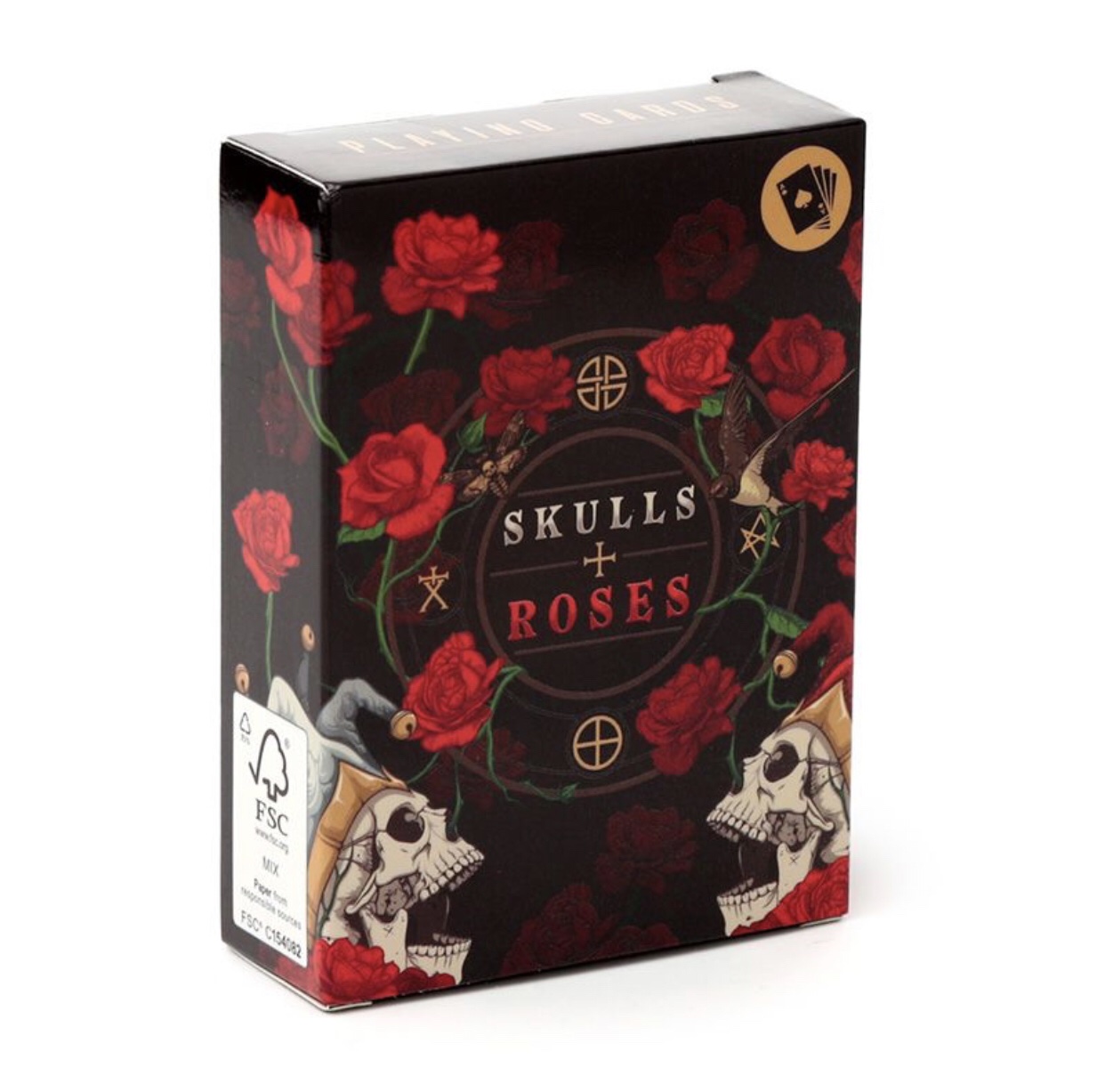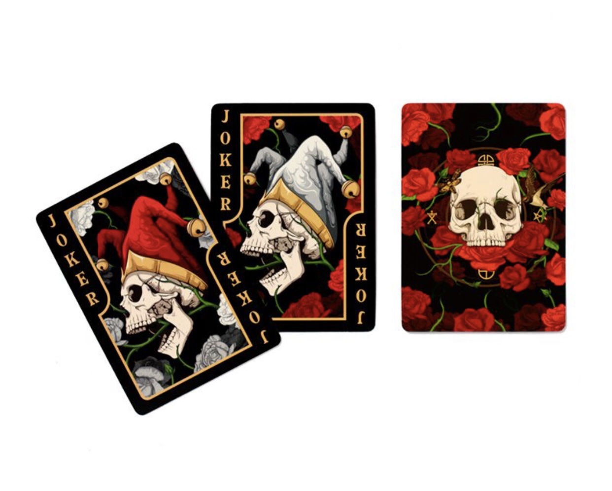Description: Product Description Skulls and Roses Standard Playing Card Deck Material: Card and Paper Number of Cards in Deck: 52 plus 2 Jokers