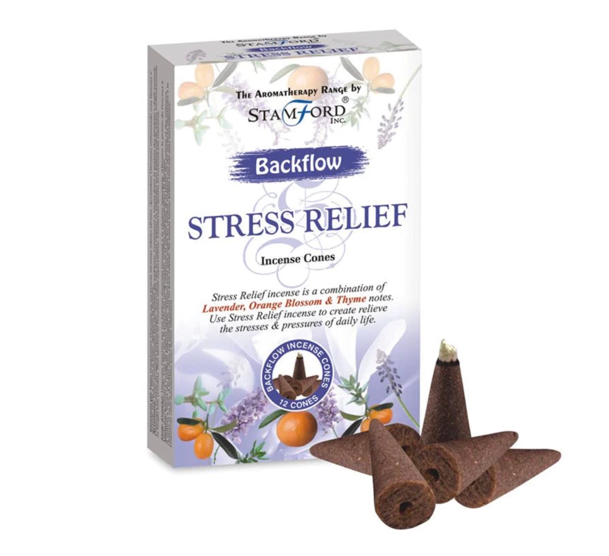 Stamford Inc 37466 Stress Relief Backflow Incense Cones (12 Cones) (Lavender, Orange Blossom And Thyme)