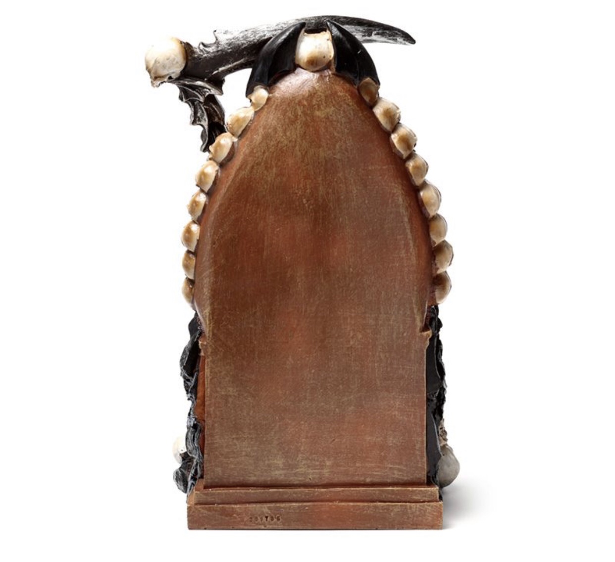 Product Description The Reaper of Death LED Throne of Skulls Material: Resin and Plastic Batteries Required: 2 AA Batteries Included: No LED: Controlled by an on/off switch on the bottom. Product Attributes Dimensions:- Height 23.5cm Width 15.5cm Depth 12.5cm